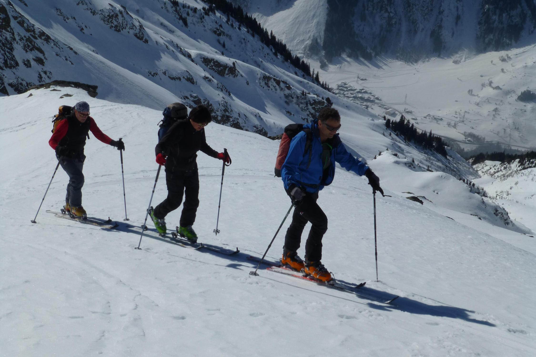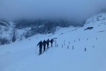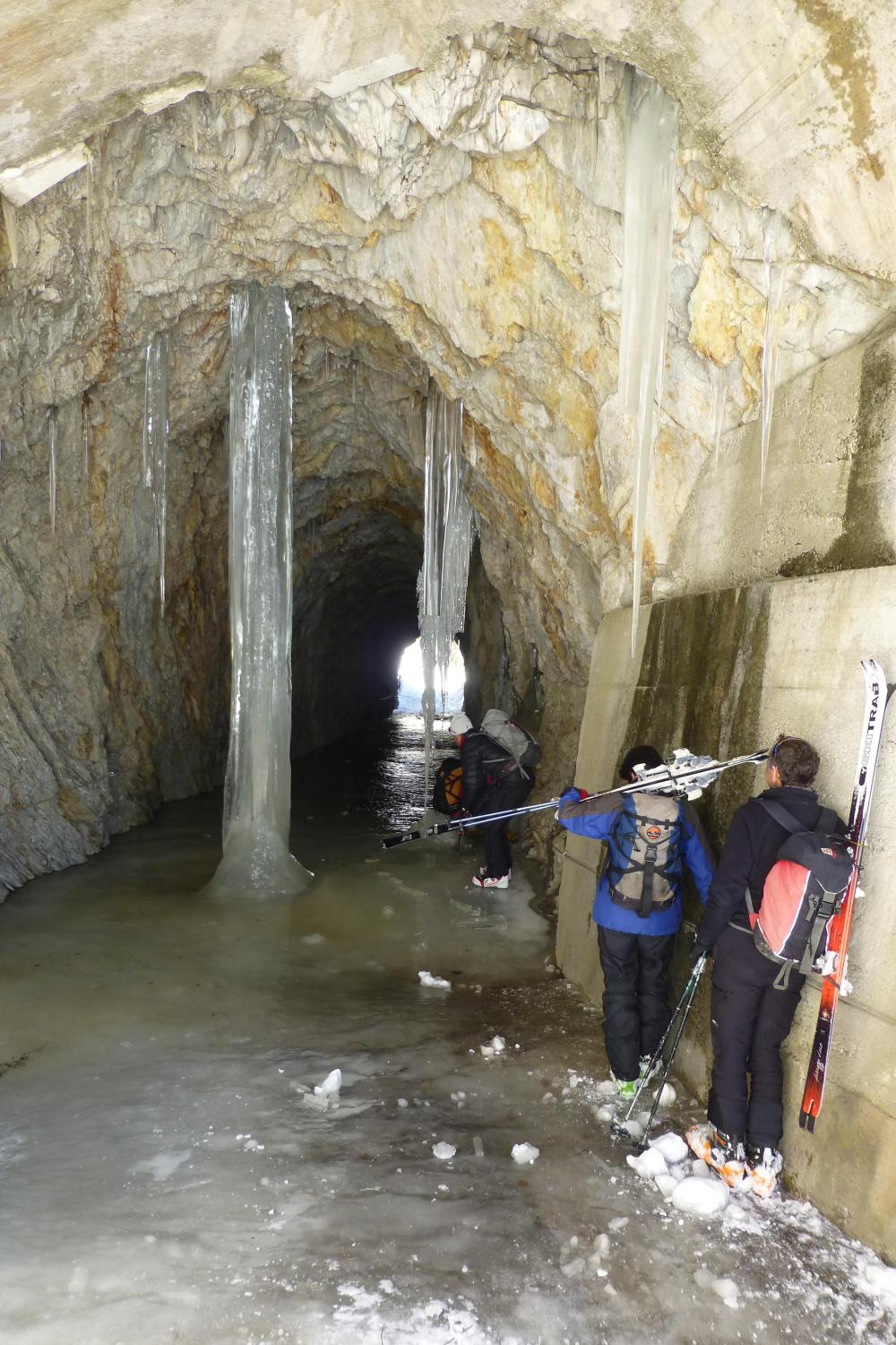 Abfahrt: Oben Pulver unten Sulz herrlich die 1910M wieder runter fahren zu können! Die Abfahrt führte weiter unten über die Alpstrasse und da müssten wir uns im Tunnel noch über das glatte Eis bewegen was dank den Kabeln an der Seite bestens ging.