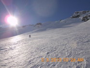 Meist Winddeckel oder Hartschnee... wechselnde Schneeverhältnisse. trotz maximaler Sonneneinstrahlung auch an Süd exp. Hängen noch kein Sulzschnee.