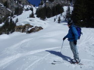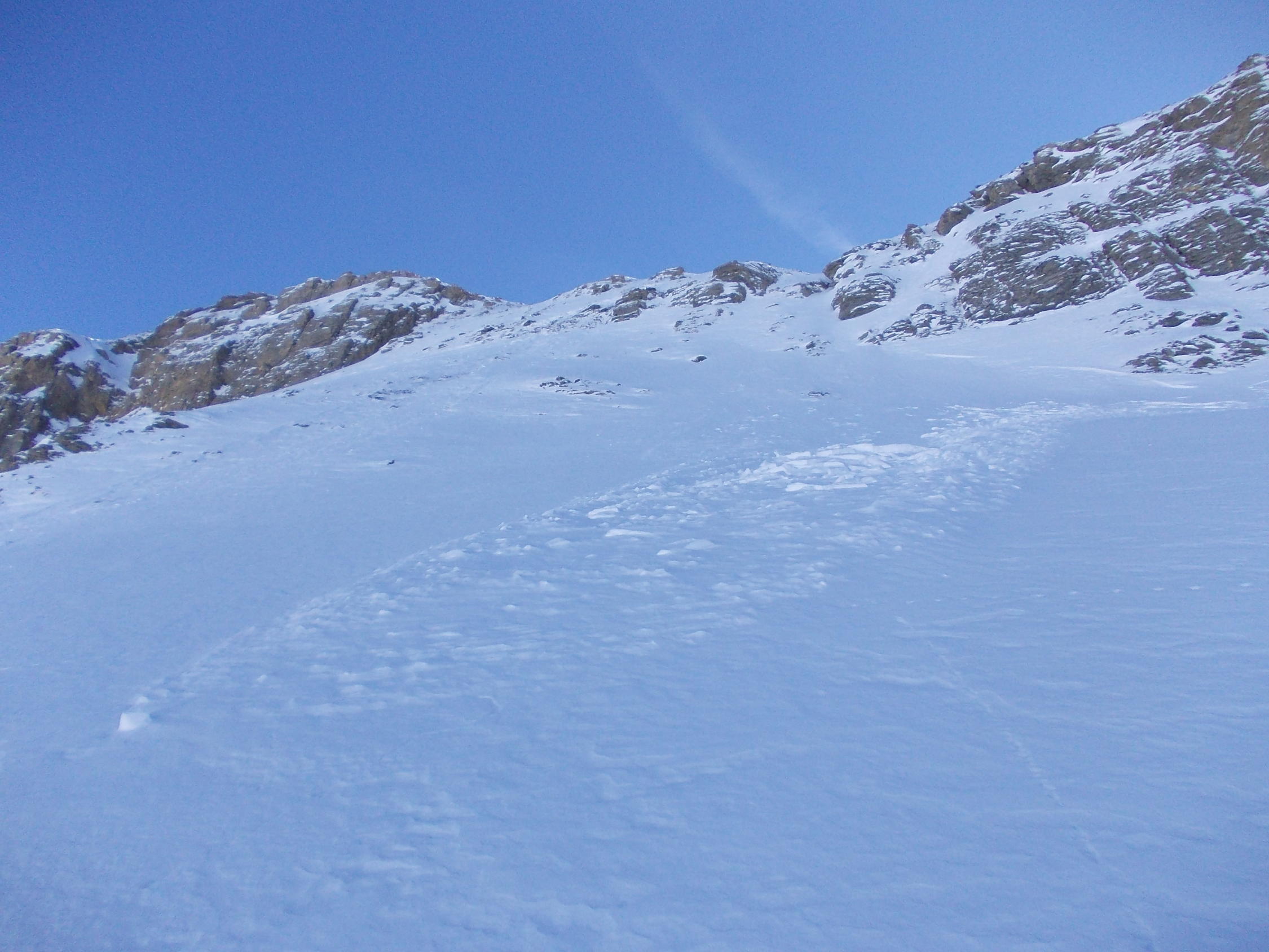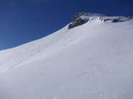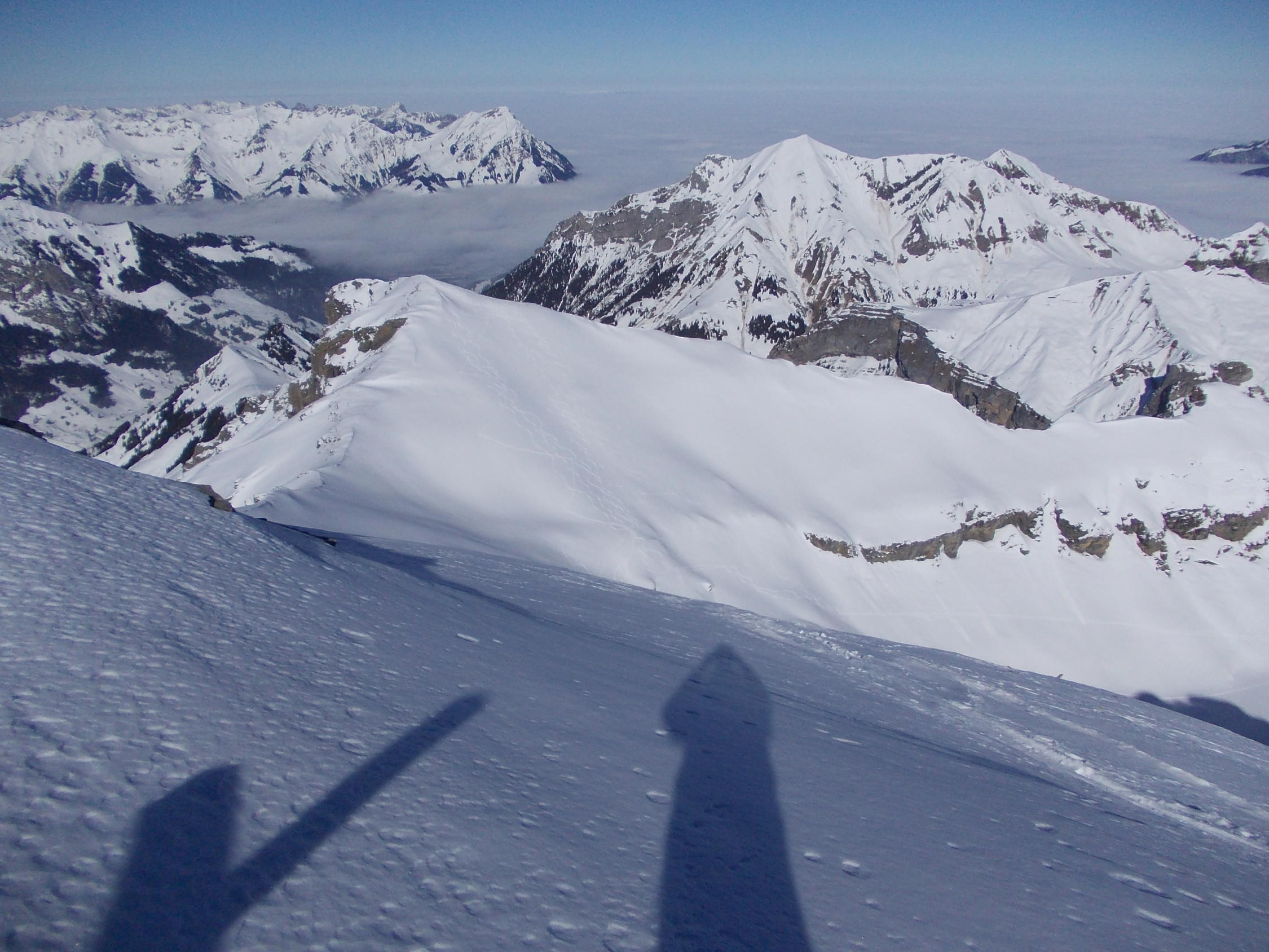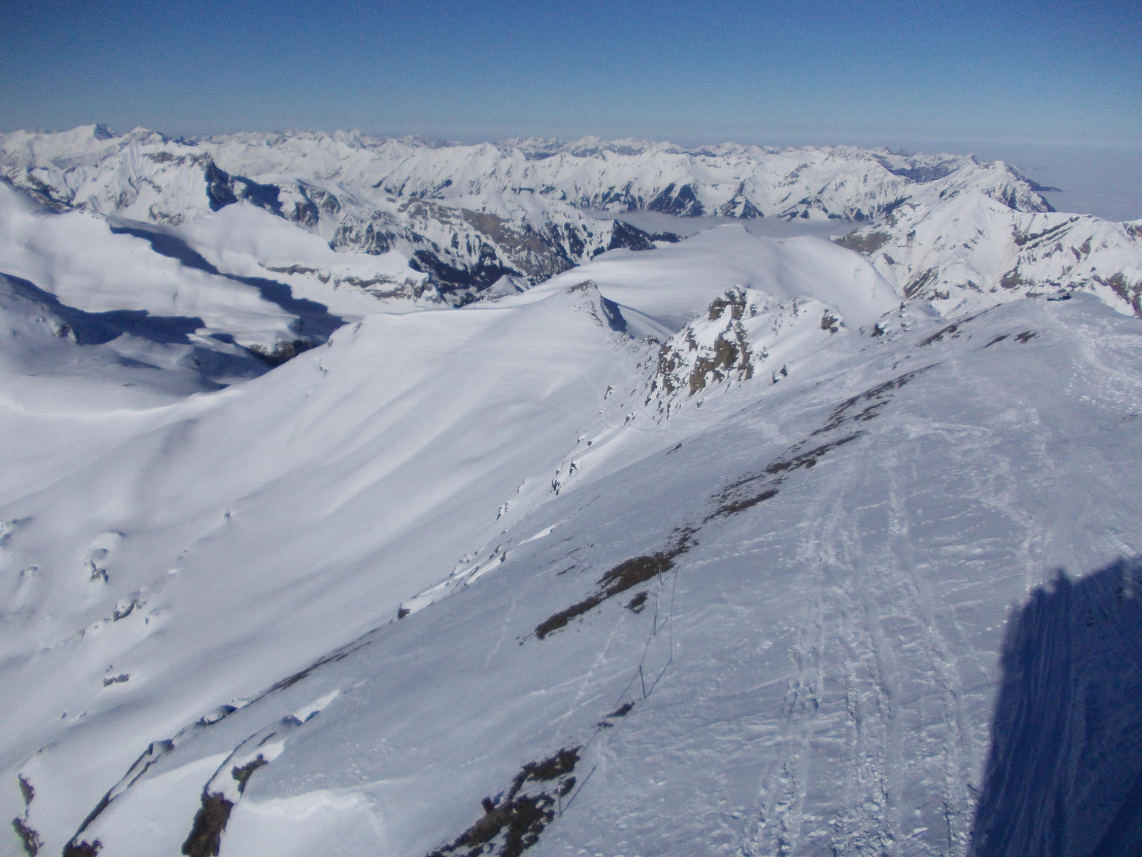 Abfahrt vom Wild Andrist zum Ostrücken auf den Punkt 2730m. Hier Nordwärts steil Ski tragend ueber 50m