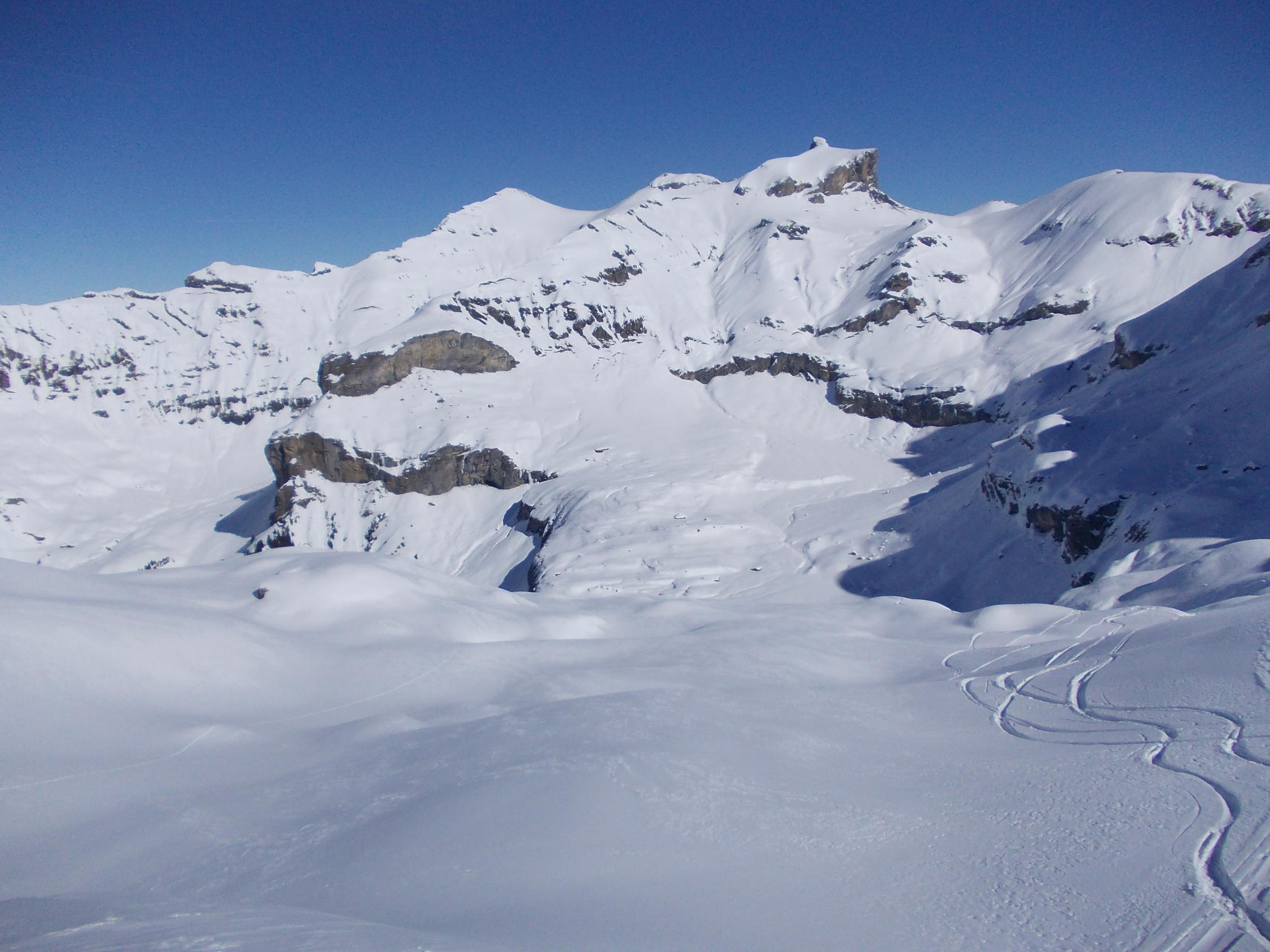 Aufstieg: Prima Verhältnisse. Auf dem Schilthorn hats 3 Grad minus gehabt. Sehr gute Spur vom Roten Hard auf den Wild Andrist. Der Gratrücken und die Felspassage vor dem Gipfelgrat ist gut zu gehen. Auch in der Sonnen beschienenen Ostflanke des Wild Andrist immer noch bester Pulverschnee.