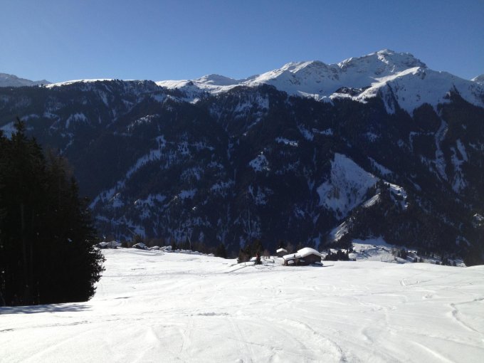 Ab Spundätscha prima Pulverlichtungen. Auf dem Alpweg relativ eng.