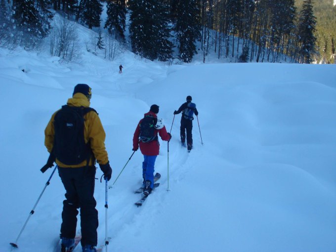 Gute Spur bis zum Gipfel. Aufstieg und Abfahrt durch den Wald ist ein Genuss. Hier liegt überall noch genügend Pulver. Ab Rautialp an den Sonnenhängen gefrohrener Deckel, ansonsten an den Schattenhängen noch genügend Pulver für eigene Spuren