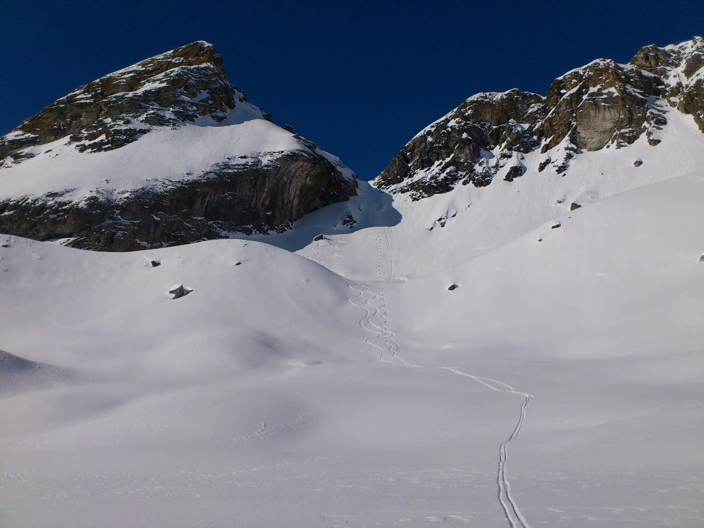 Die gesamte Ostflanke mit Ski runterfahren ist nur für sehr gute Skifahrer!