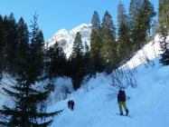 Im Wald Aufstieg noch praktisch nicht gefrorene Spur, ohne Harscheisen machbar.