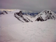 Gipfelflanke noch erstaunlich gut zu fahren, ab Frilismad nass und schwer