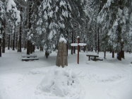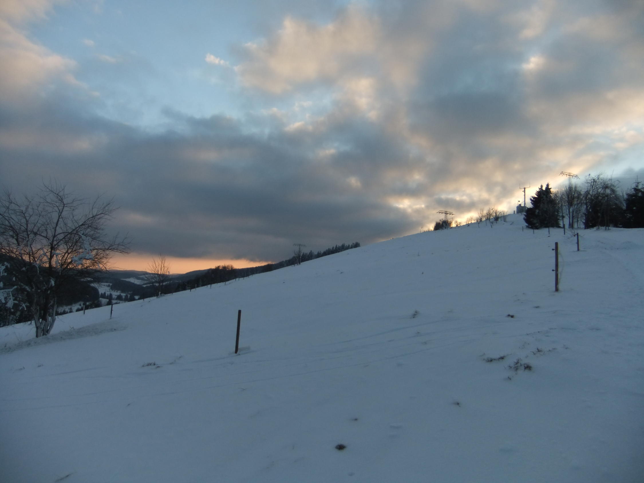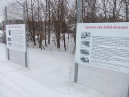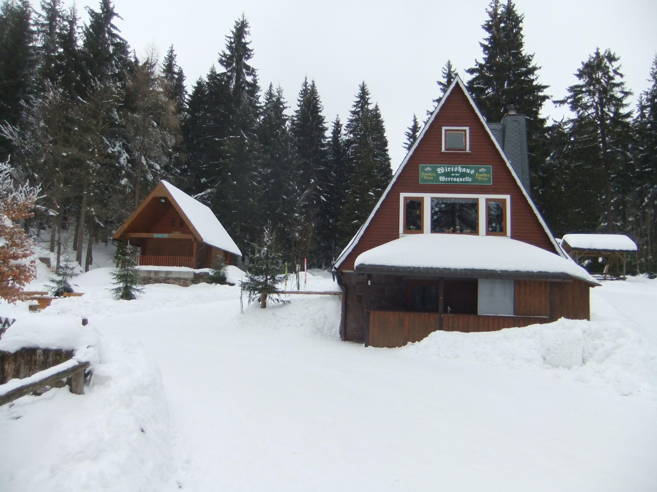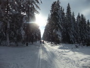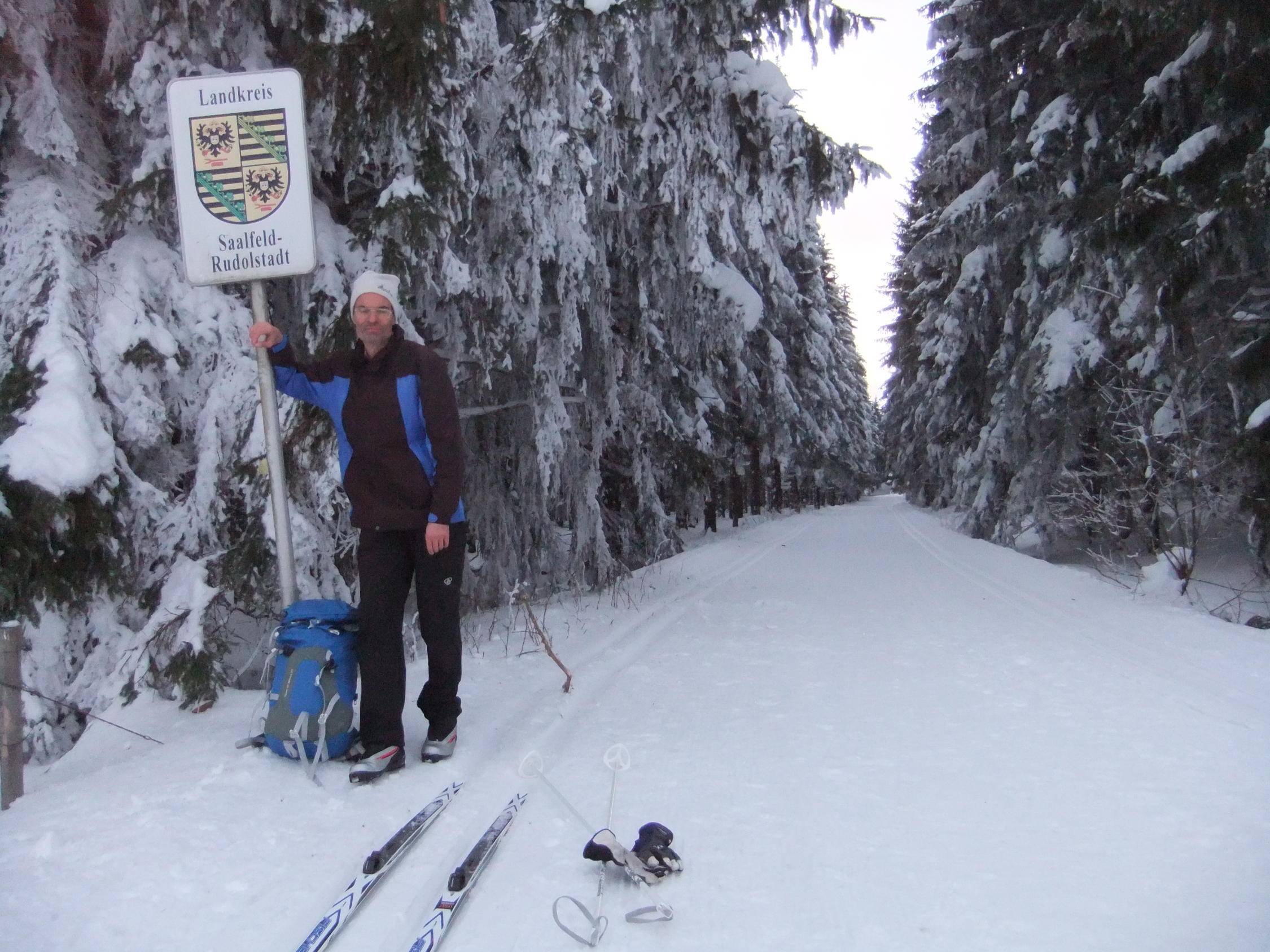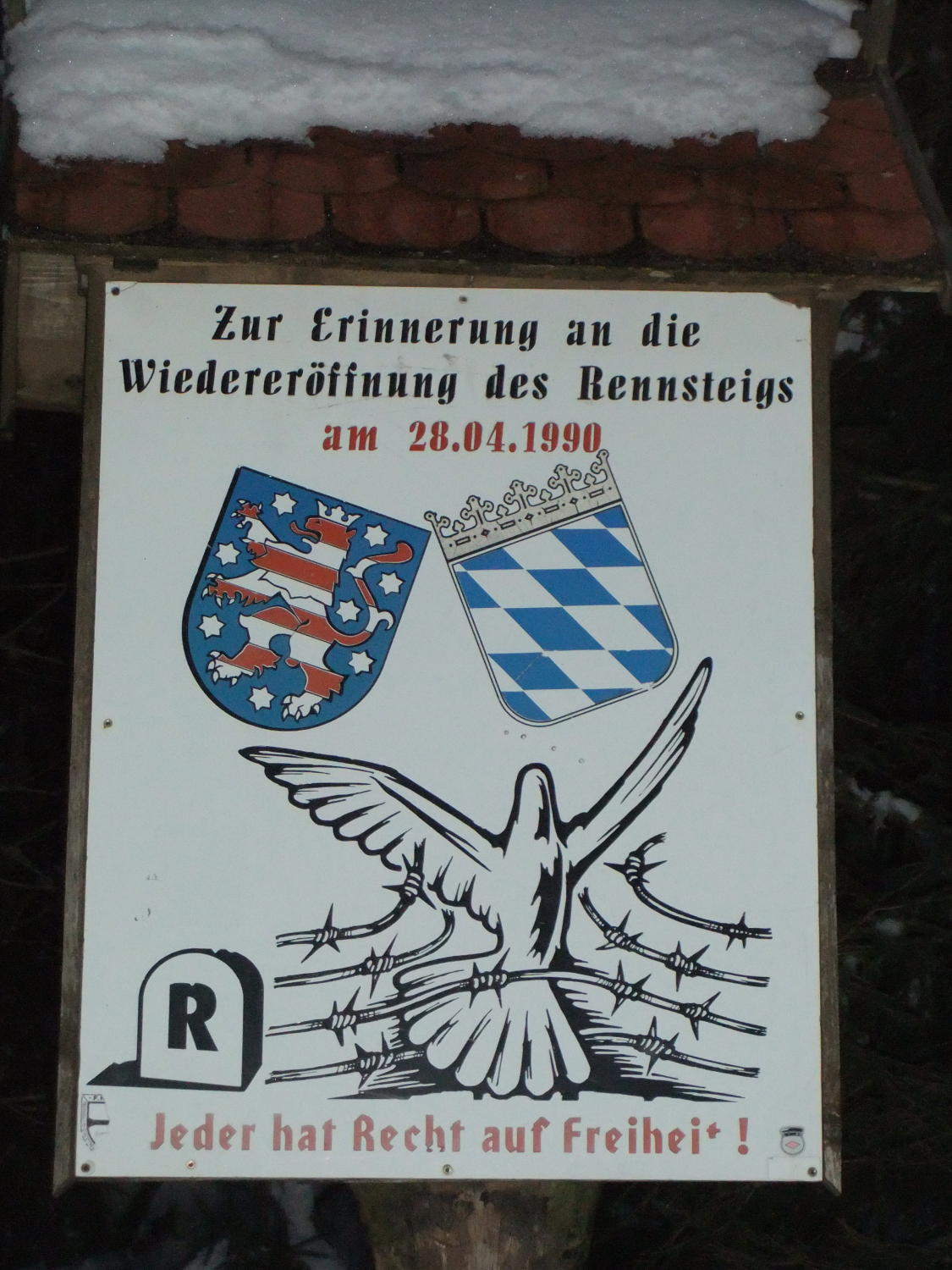 Da vormittags das Wetter keine großartige Sicht bot, und der Weg durchs Werratal frisch gespurt war, verzichtete ich auf den Aufstieg zur Rennsteigwarte, sondern besuchte die Werra-Quelle südlich unterhalb vom Rennsteig und fuhr von dort weiter zur Heidehütte hinauf und von dort auf dem Rennsteig weiter.
