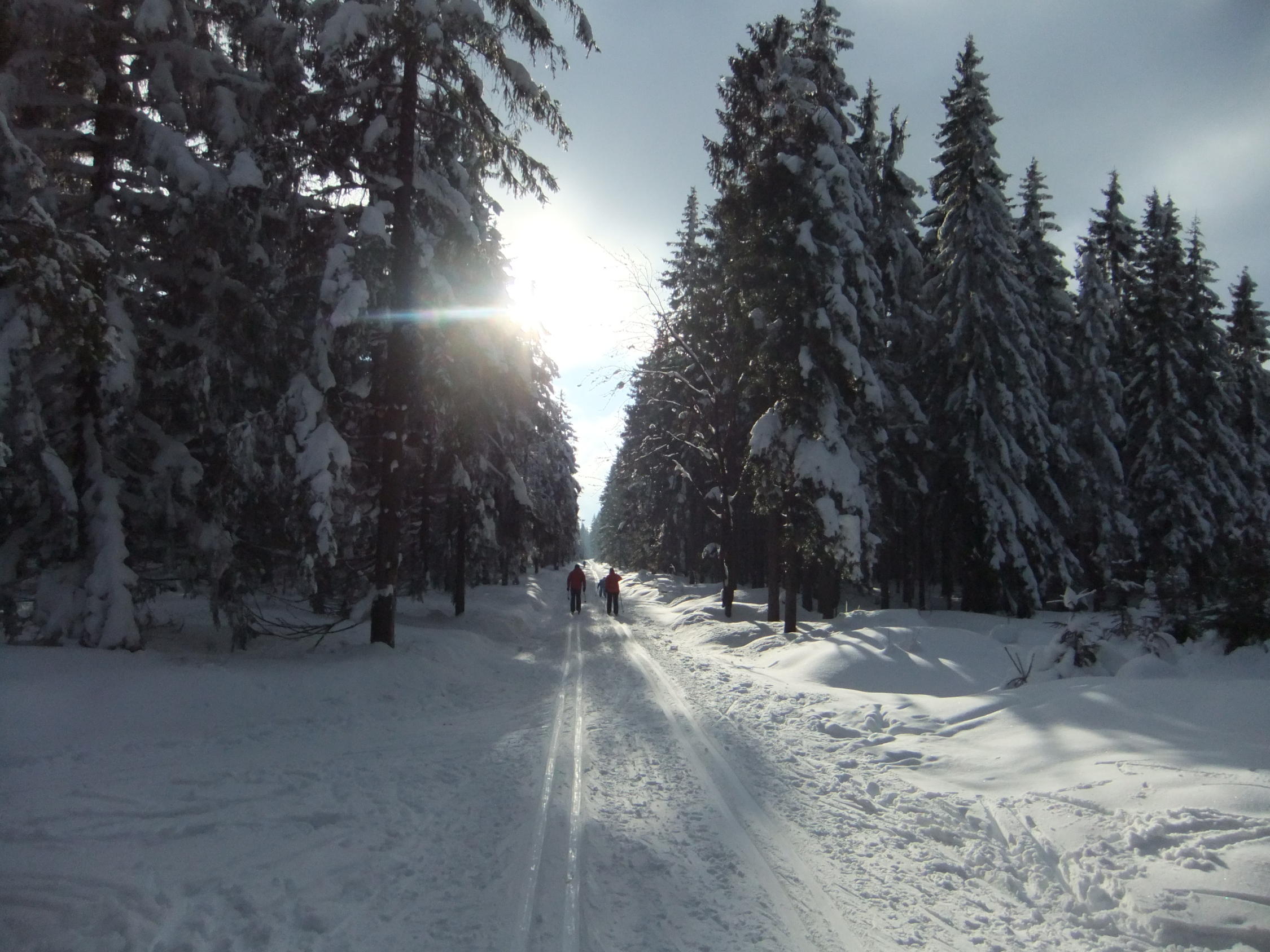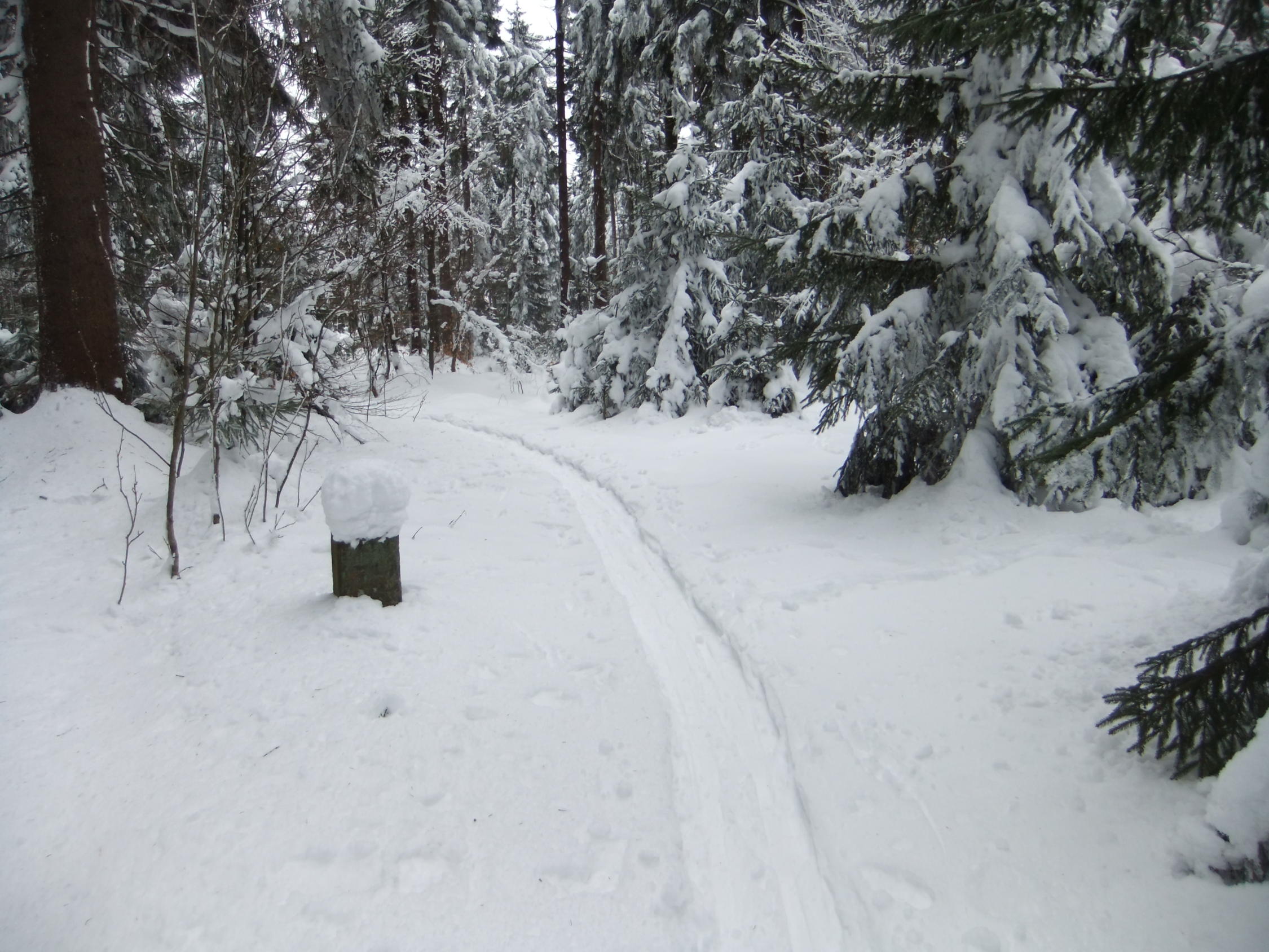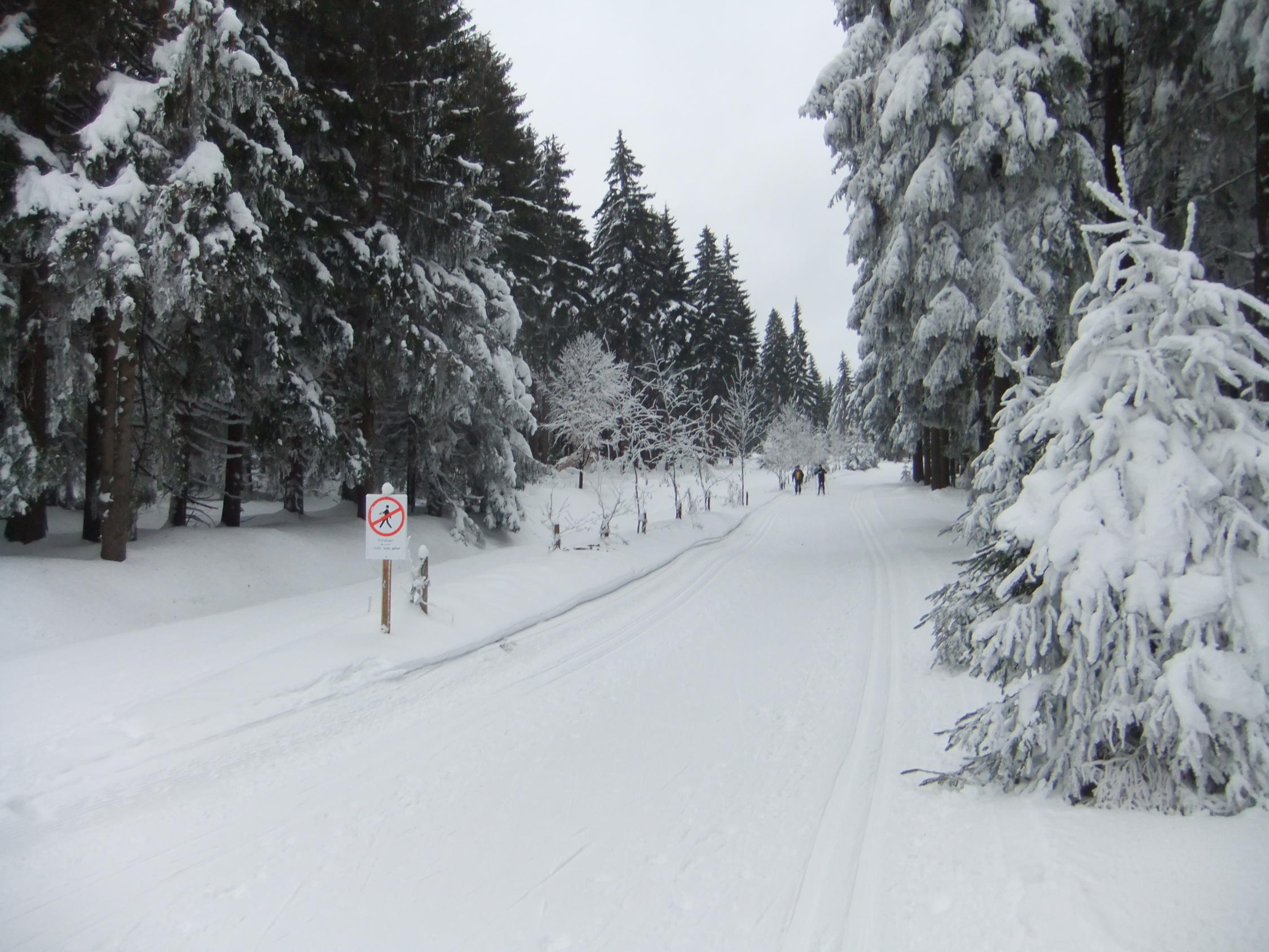 Ab Neuhaus nur noch Loipen auf ehemaligen Grenzpatrouillenwegen. Nach Steinbach a.W. nur auf den letzten 2 km rechts von der Hochstraße.