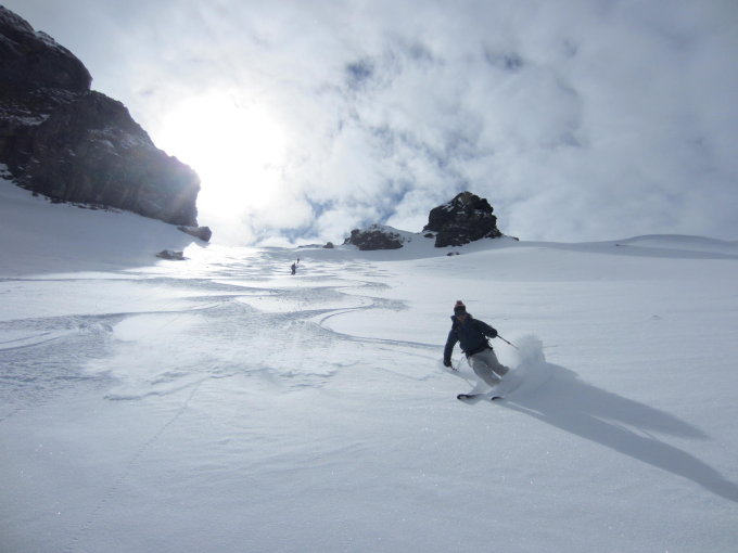 Abfahrt vom Lobhornsattel in Richtung Fürtalgrinde: im oberen Abschnitt bis 10cm Pulver auf hartem, tragendem Untergrund.