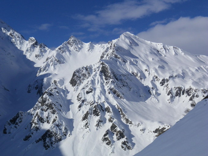 In der Traverse unter dem Brunnistock sind 2 (grosse) Schneebretter schon runter. Ein weiterer letzter Hang sieht noch nicht entladen aus.