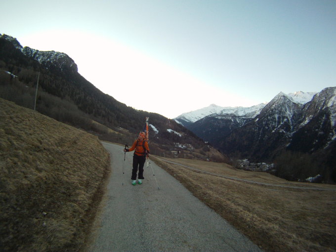 Von Lurengo bis Cne di Deggio mussten die Skier getragen werden. Ab Deggio 1605m hat es dann eine geschlossene Schneedecke. Die Schneedecke war hart aber griffig, ab ca. 2300 tragende Kruste teilweise mit gepressten Pulvertaschen bestückt.