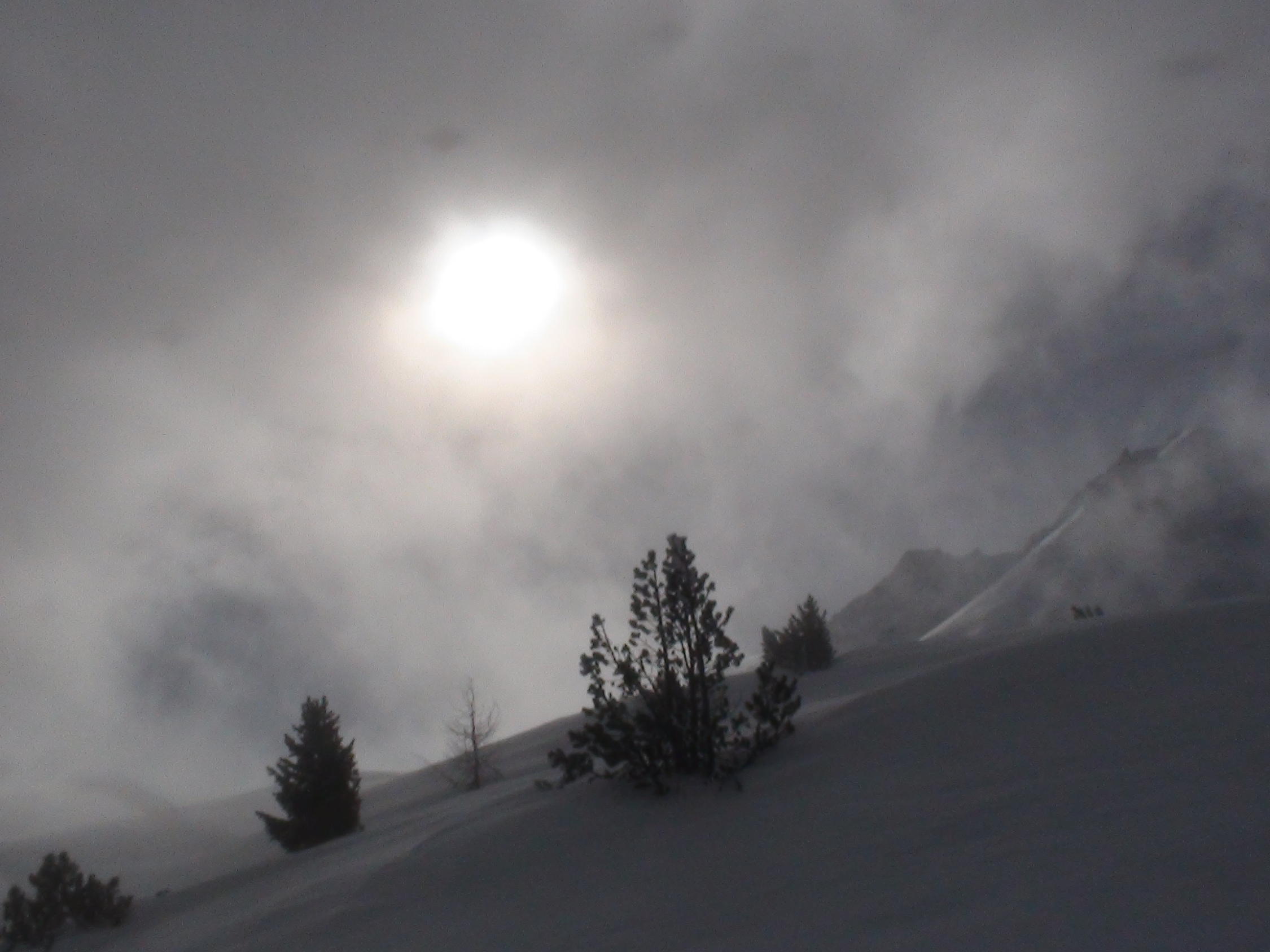 Die steilen Hänge gut einschätzen. Es sind schon einige Schneerutsche abgegangen.