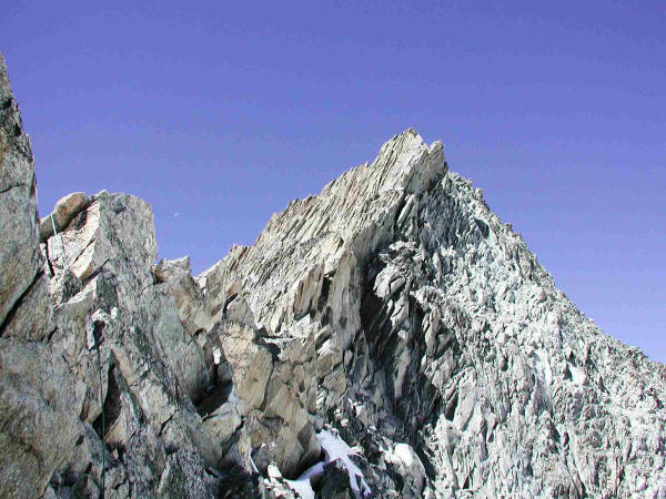 4c, 2-3b am kurzen Seil gehen. Wenn man den Gipfel senkrecht hochklettert unbedingt Friends und Klemmkeile mitnehmen. Achtung recht lose, auf Steinschlag achten.