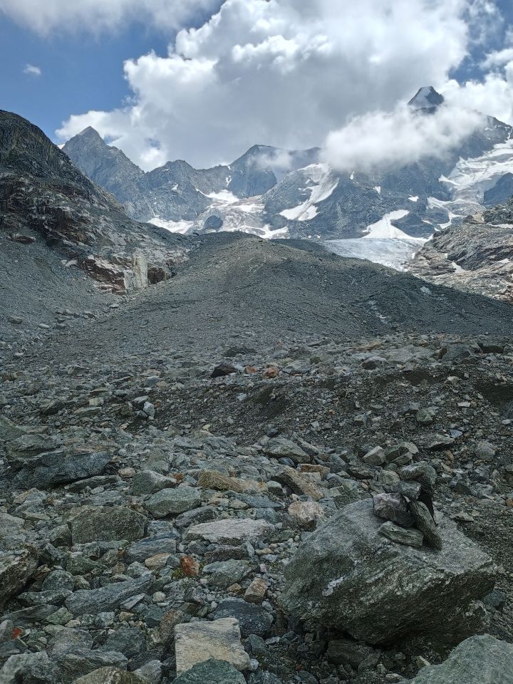 Zustieg von der Petit Mountet zur Grand Mountet Hütte via Plan des Lettres und Glacier de Zinal gut machbar. Der Übergang vom "Festland" auf den Gletscher und umgekehrt ist jeweils etwas abenteuerlich, aber derzeit eigentlich passabel machbar mit ein bisschen "wenn und aber" auf der Grand Mountet-Seite. Auf dem (fast komplett schuttbedeckten) Gletscher sind immer wieder rote Markierungen, die Route (weglos) ist bei guter Sicht gut auffindbar - bei Nebel nicht empfehlenswert. Alpinistische Kenntnisse sind nötig für diesen Zustieg.