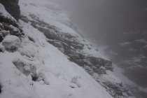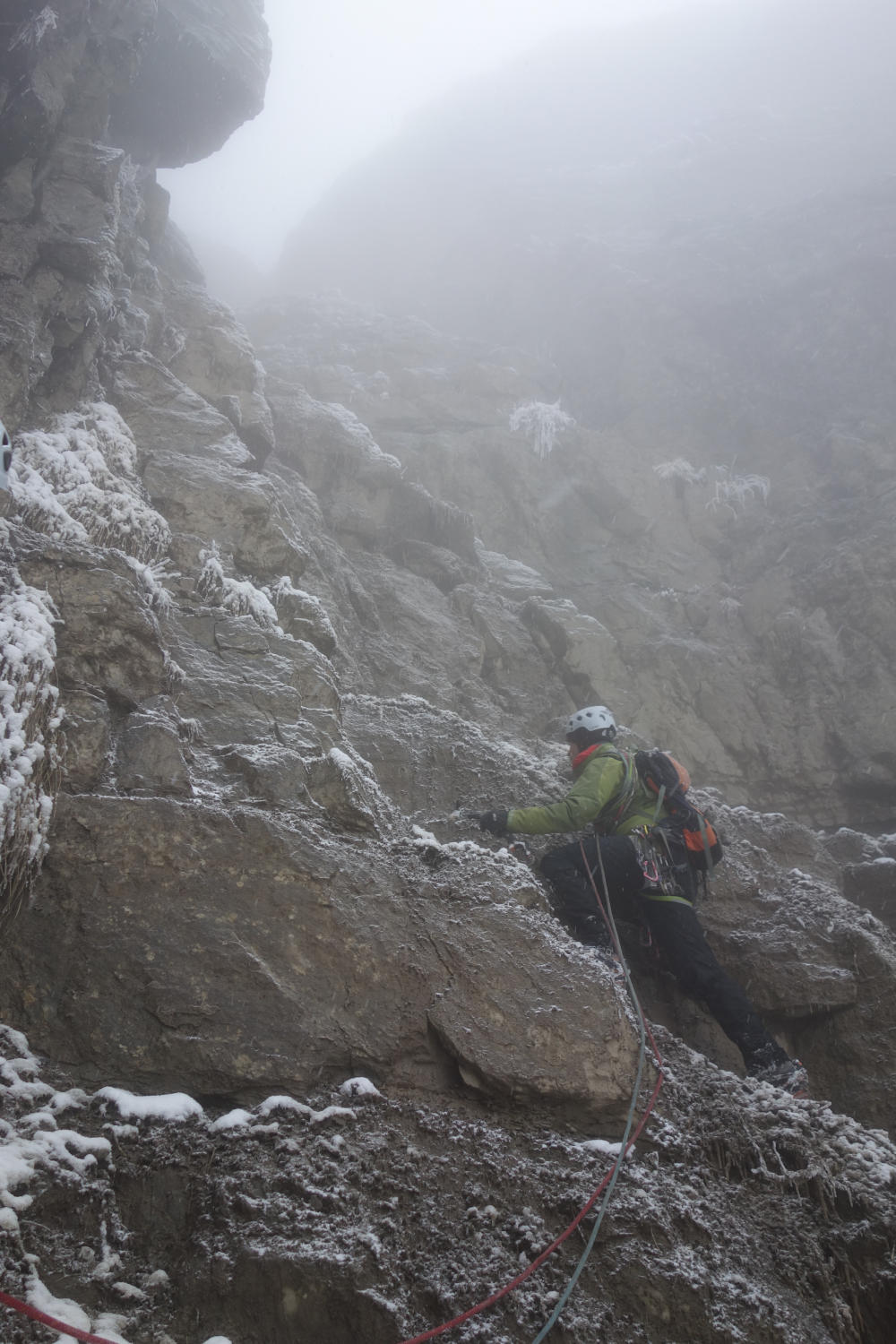 Wir sind den grössten Teil der Kletterei mit 1 oder 2 Pickeln geklettert, da diese oft gute Fixationsmöglichkeiten in halbgefrorener Erde boten.