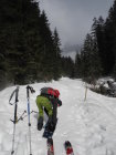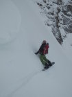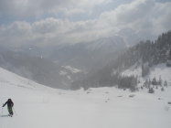 Abfahrt schöner Pulfer bis Alp Mens.Da Sonne nicht wirklich durchkam der spekulierte Sulz noch in gefrohrenem Zustand und auf harter aber griffiger Unterlage zu Tal.(Sind gerade dem Bachlauf entlang runter,geht sehr gut)