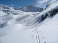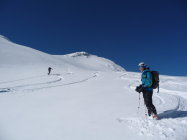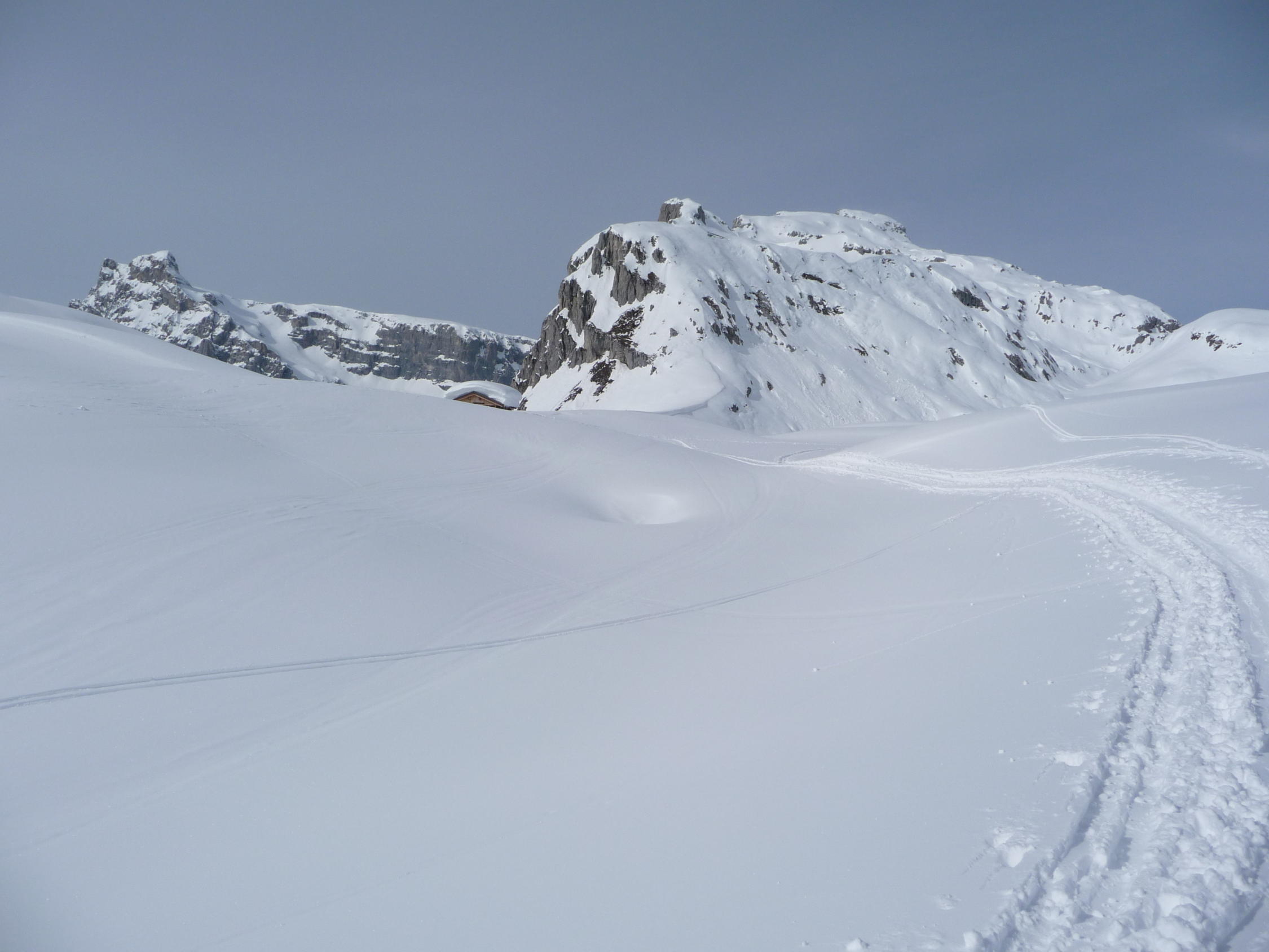 Neuschnee mit bestehender Schneedecke schlecht verbunden, jedoch für unsere Tour keine nennenswerte Probleme.