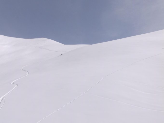 frischer gleitschneerutsch am Lauenerrothorn richtung tossetrittli
