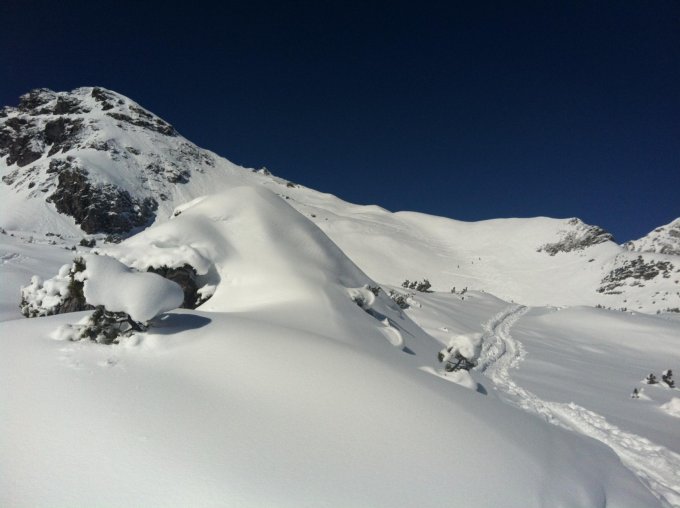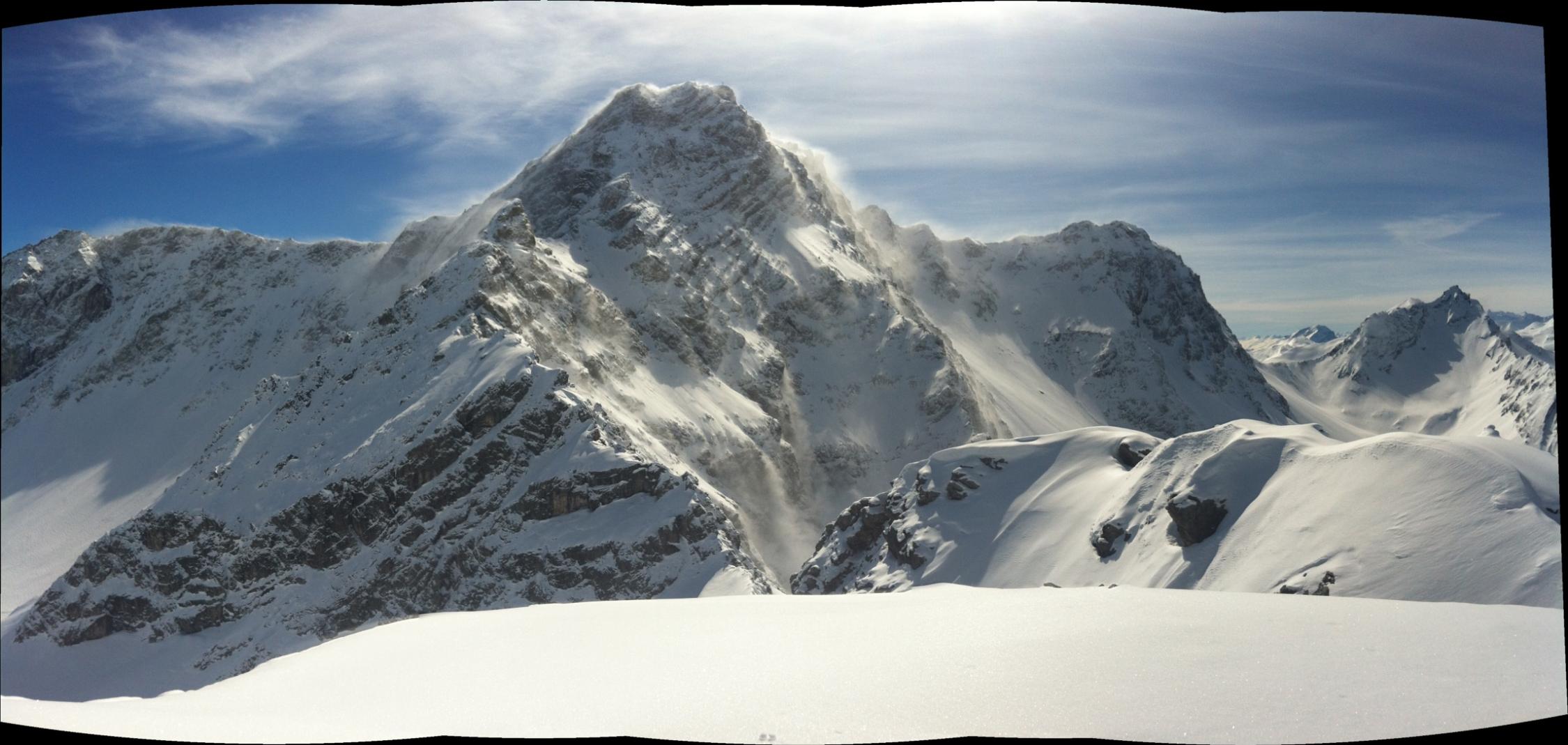Ab 14:00 Föhnsturm, der eindrucksvolle Mengen Triebschnee verfrachtete