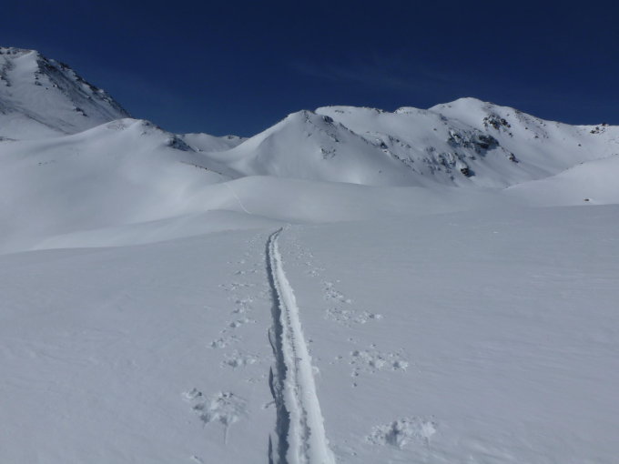Schnee: noch sehr viel vorhanden. Durchwegs Pulver, z.T. mit leichtem Winddeckel, aber problemlos zum fahren.