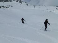 Noch viel Schnee liegt im Goms und auf der ganzen Tour.Wir machten den Aufstieg dem Wanderweg entlang und konnten einer guten Spur folgen. Das Wetter zeigte sich von der guten Seite bis kurz unter den Gipfel wo der Wind auf kam. In der Abfahrt genossen wir den Schnee der noch nicht richtig sulzig war.