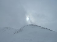 Der Gipfel war in Nebel verhüllt.