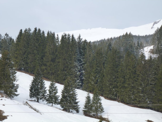 Wetter: der Fön vermochte noch etwas die Front zurückhalten. Am Anfang sogar noch Sonne, später nur noch bedeckt aber ohne Niederschlag und guter Sicht. Kaum am Gipfel fiel der Fön zusammen. Es begann zu schneien. Sicht blieb jedoch relativ gut, nach dem Gipfelhang dann sogar sehr gute Sicht bis unten.