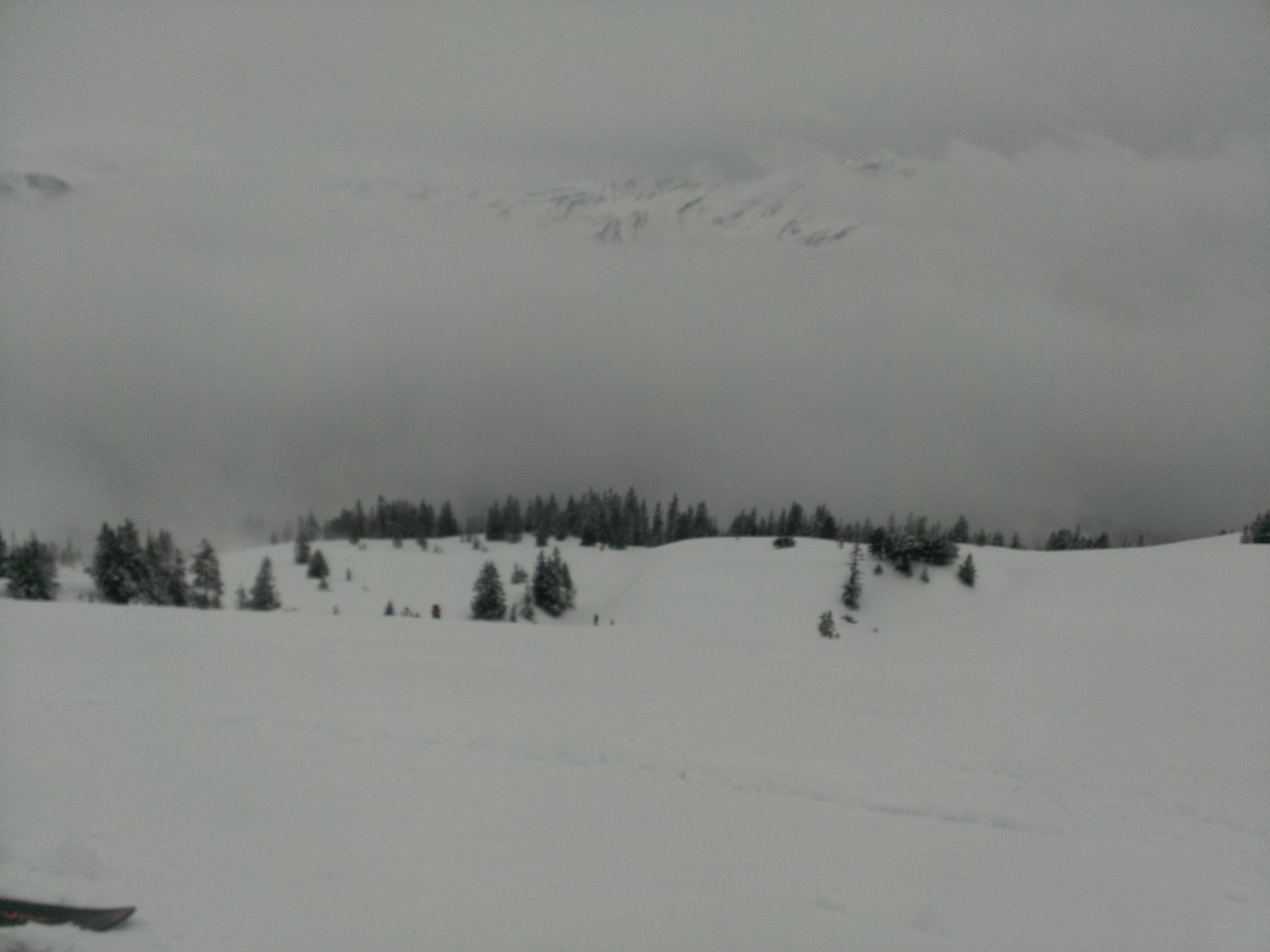 Vor Übergang zum Gipfel dann praktisch nur noch weiss in weiss. Im oberen Teil selber gespurt..im Übergang leicht nach rechts korrigiert. Gipfelhang letzter Teil etwas zu hoch erwischt. Schlussendlich den Gipfel trotz Nebel erreicht...mit Ski.