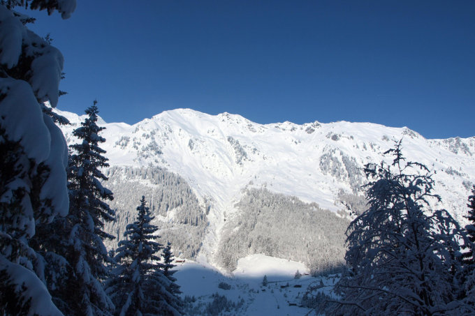Achtung, Die Forststrasse wurde vor dem Neuschnee bis zu den unteren Poversalmen geräumt. Sobald es wärmer wird ist's vorbei mit dem Vergnügen bis zum Auto, denn es schaut sofort die Strasse raus. Schade, weil durch den Wald kann man ja wegen Aufforstung auch nicht mehr runterfahren.