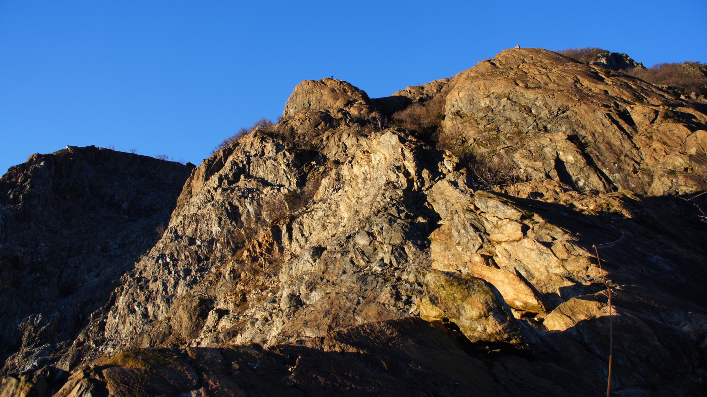 Frühmorgens hat es gleich Sonne in der Route und die Felsen sind wunderschön rot angestrahlt. Von Turin nur 25 min Fahrt