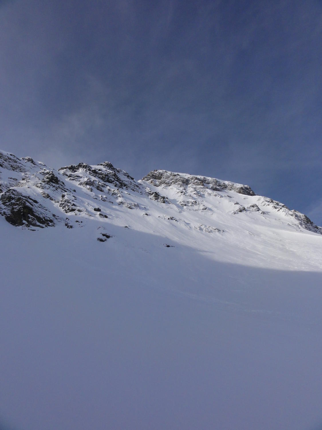 Grosse Wächte direkt oberhalb Zustieg zum Frühstücksplatz (ca. 3-4 Meter hoch)