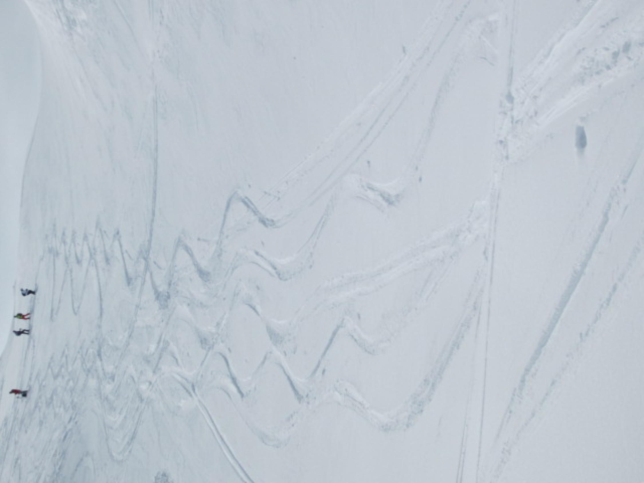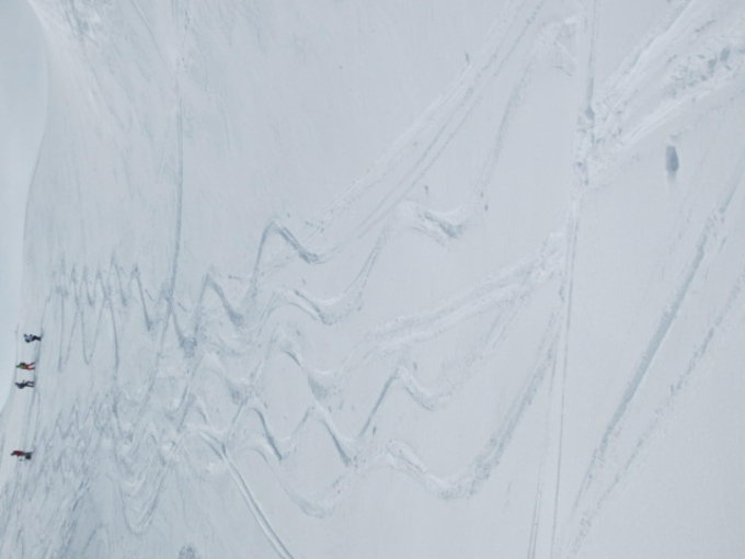 Tolle Verhältnisse in der Abfahrt bis ca. 2000m, dann gedeckelt, da hatten nur die Leichten mit den breiten Ski Spass.