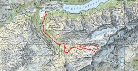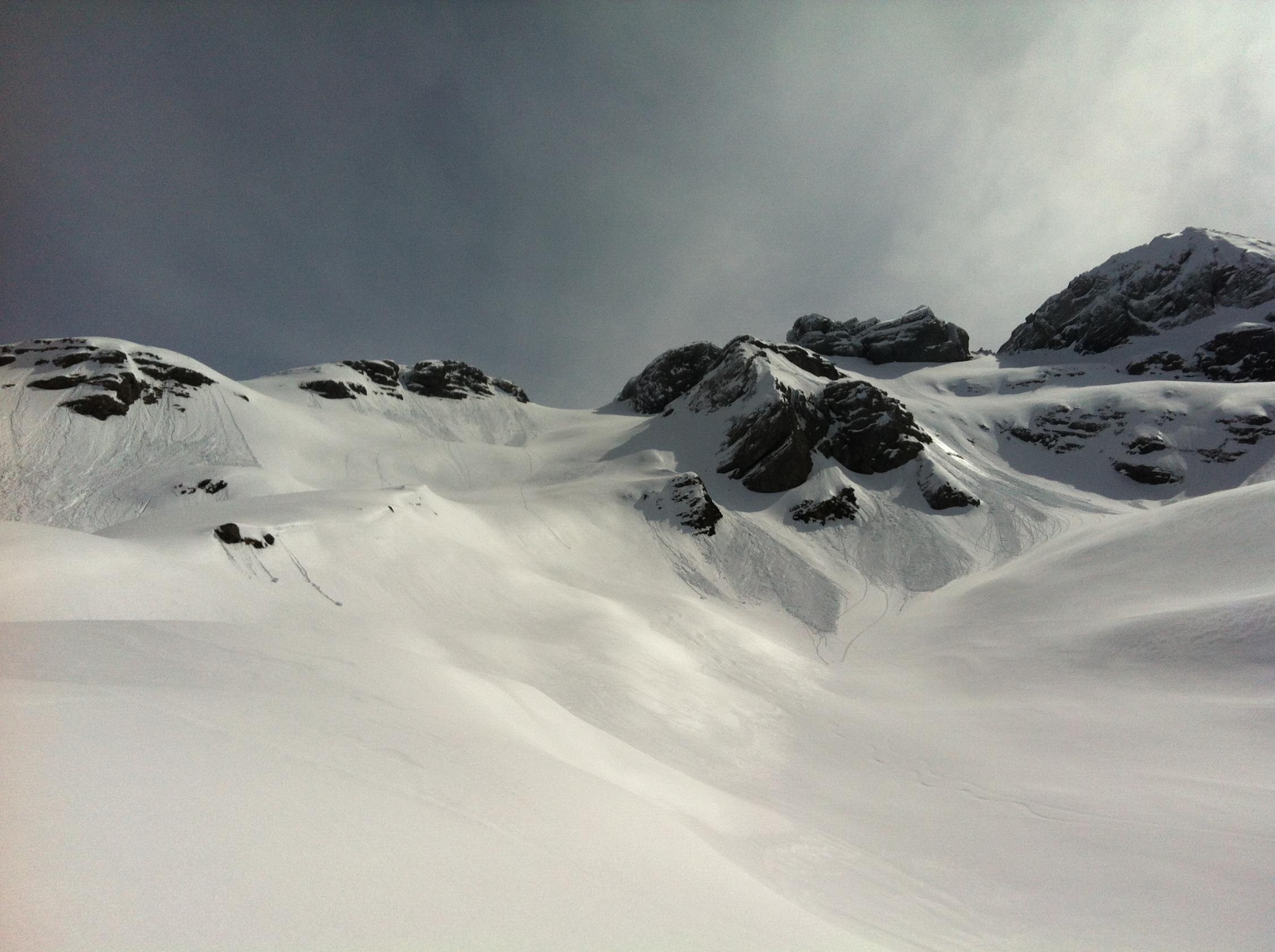 Ab Gipfel nordostwärts haltend unter die Bächistock-Westwand (Powder) und via Radtäli und Radstöckli zurück zum P.1762 (Kartonage und Sulz). Ab hier bis zum Ausgangspunkt Sulz.
