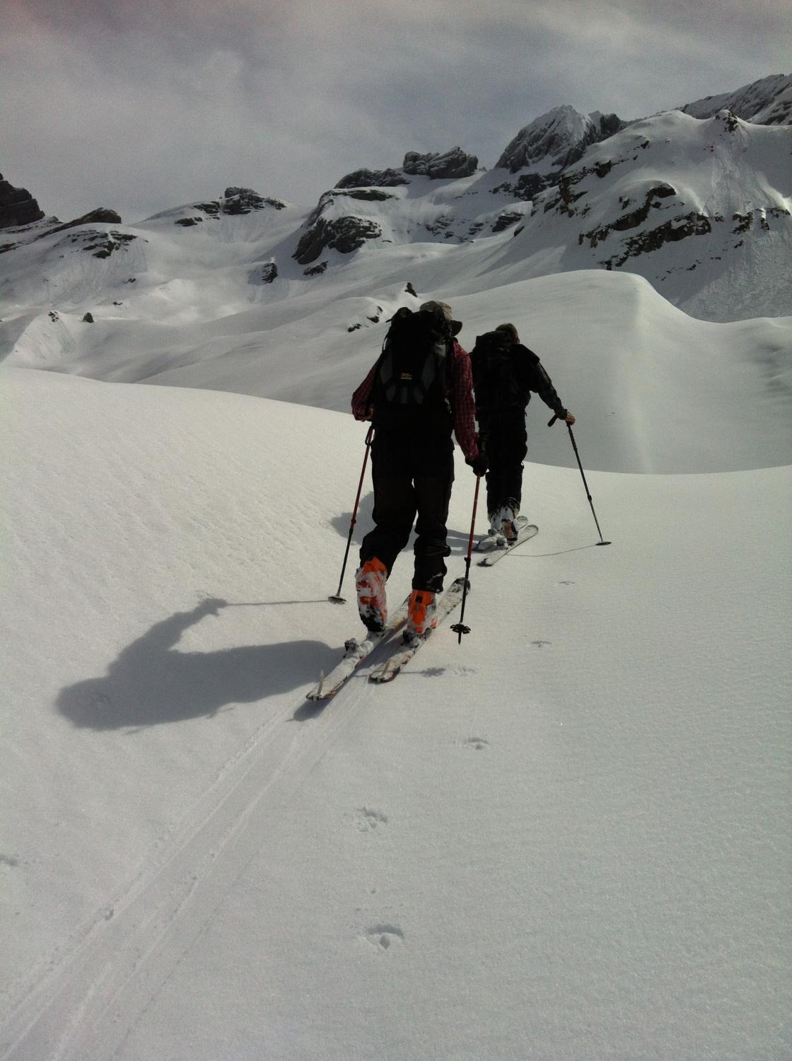 Ab Startpunkt Elmer bis P.1762 kurz vor Bächistafel beinharter Firn.