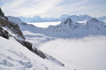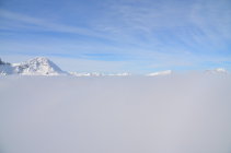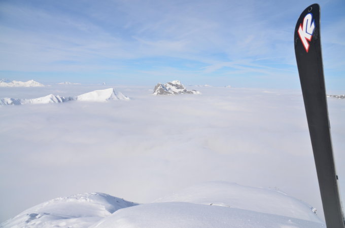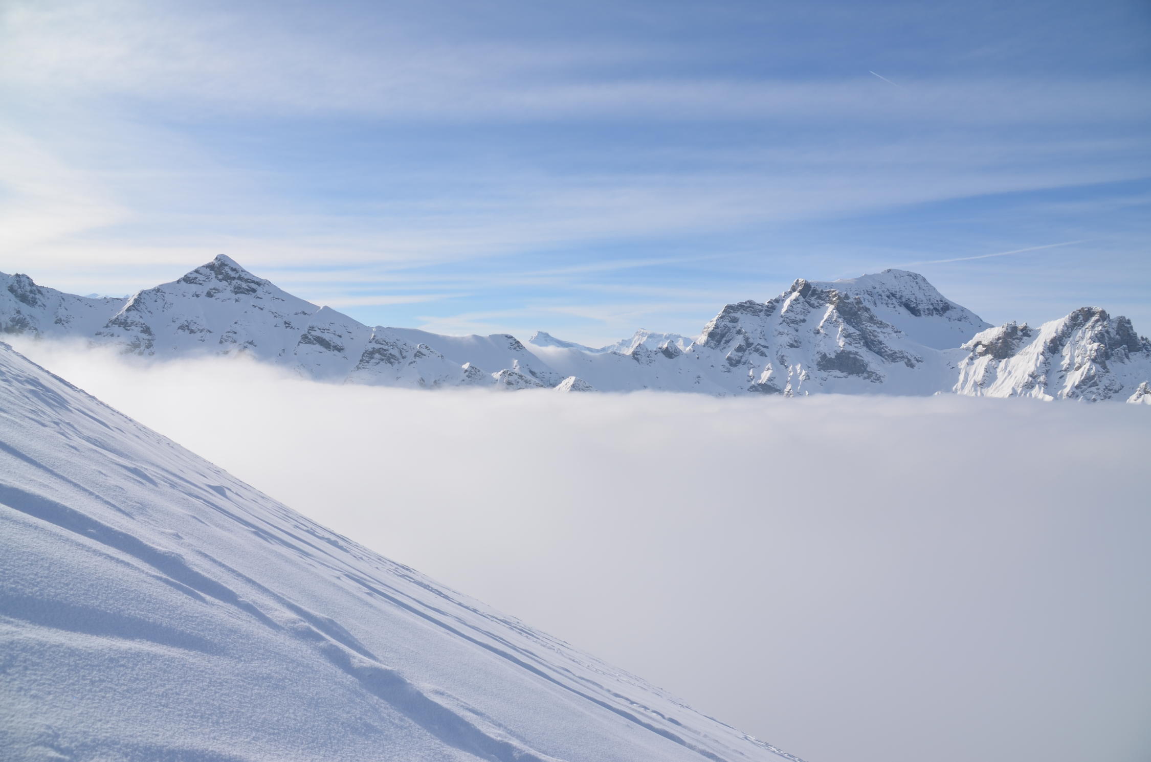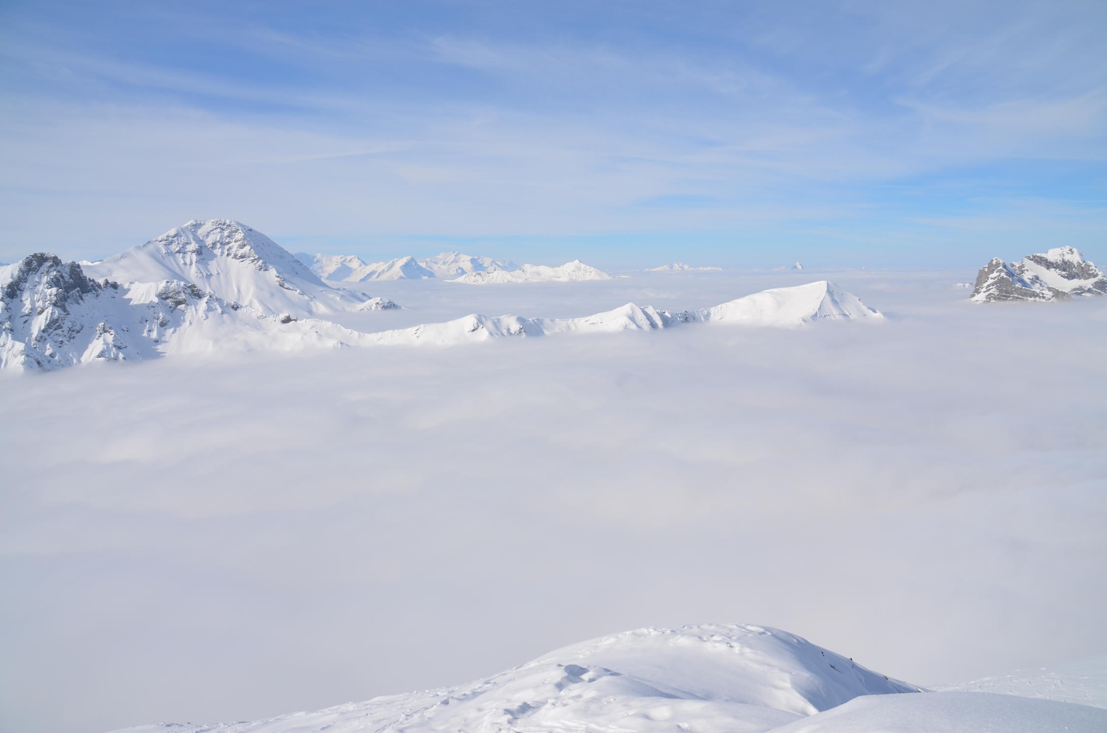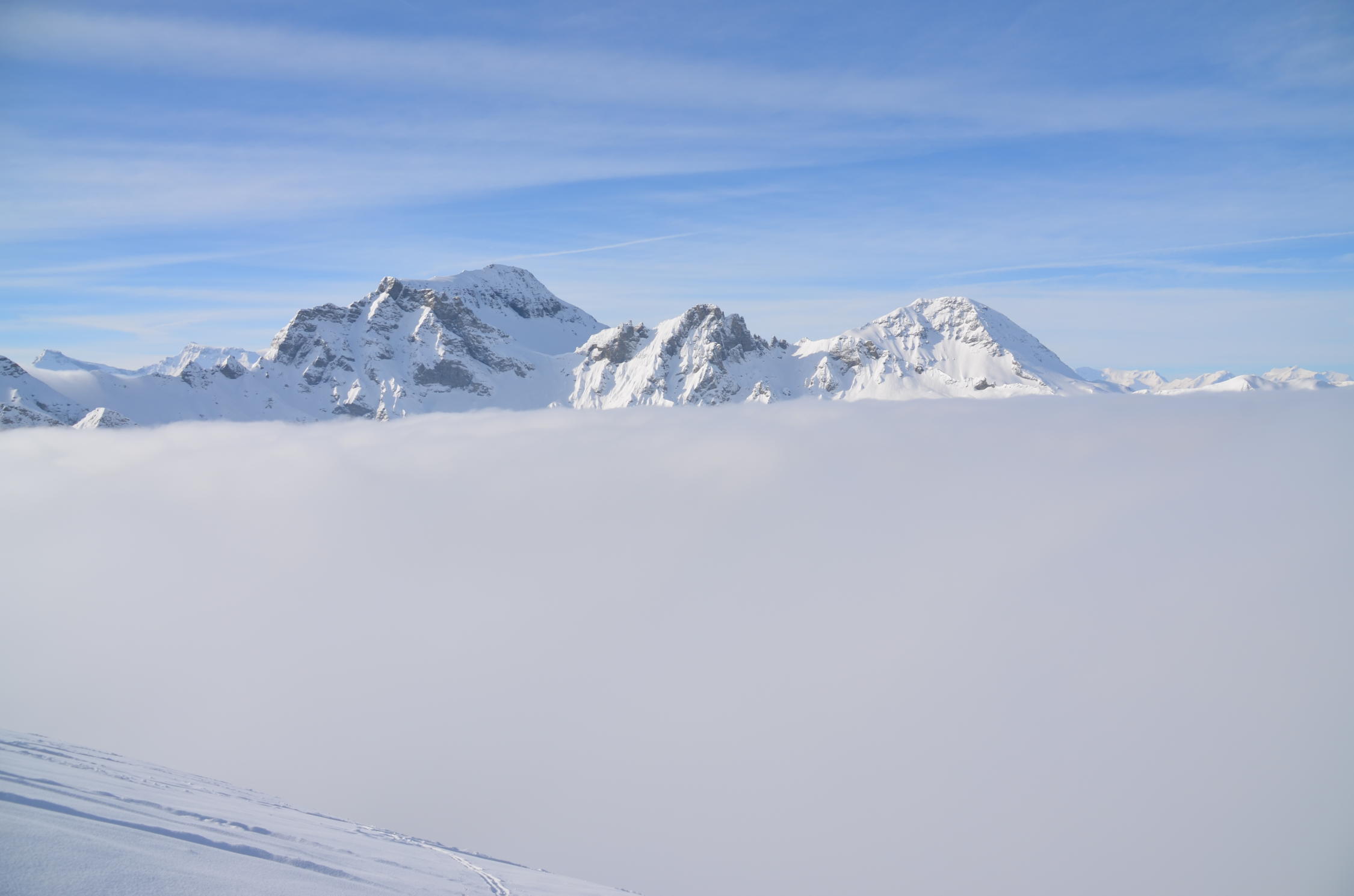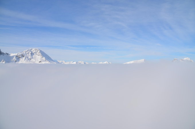 Beim PP einige cm feuchter Neuschnee. Oben knapp 10cm Flaum. Ab 1800 - 2200müM stockdicker Nebel - darüber fantastisch und unter der dicken Nebelschicht ebenfalls gute Sicht.