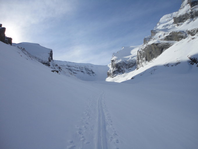 Im unteren Teil der Abfahrt übergang zu leicht Sulzigem Schnee
