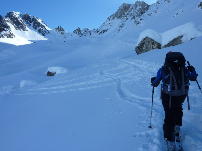 Abfahrt mehrheitlich Pulver, zwischendurch leichter Deckel unten angesulzt.