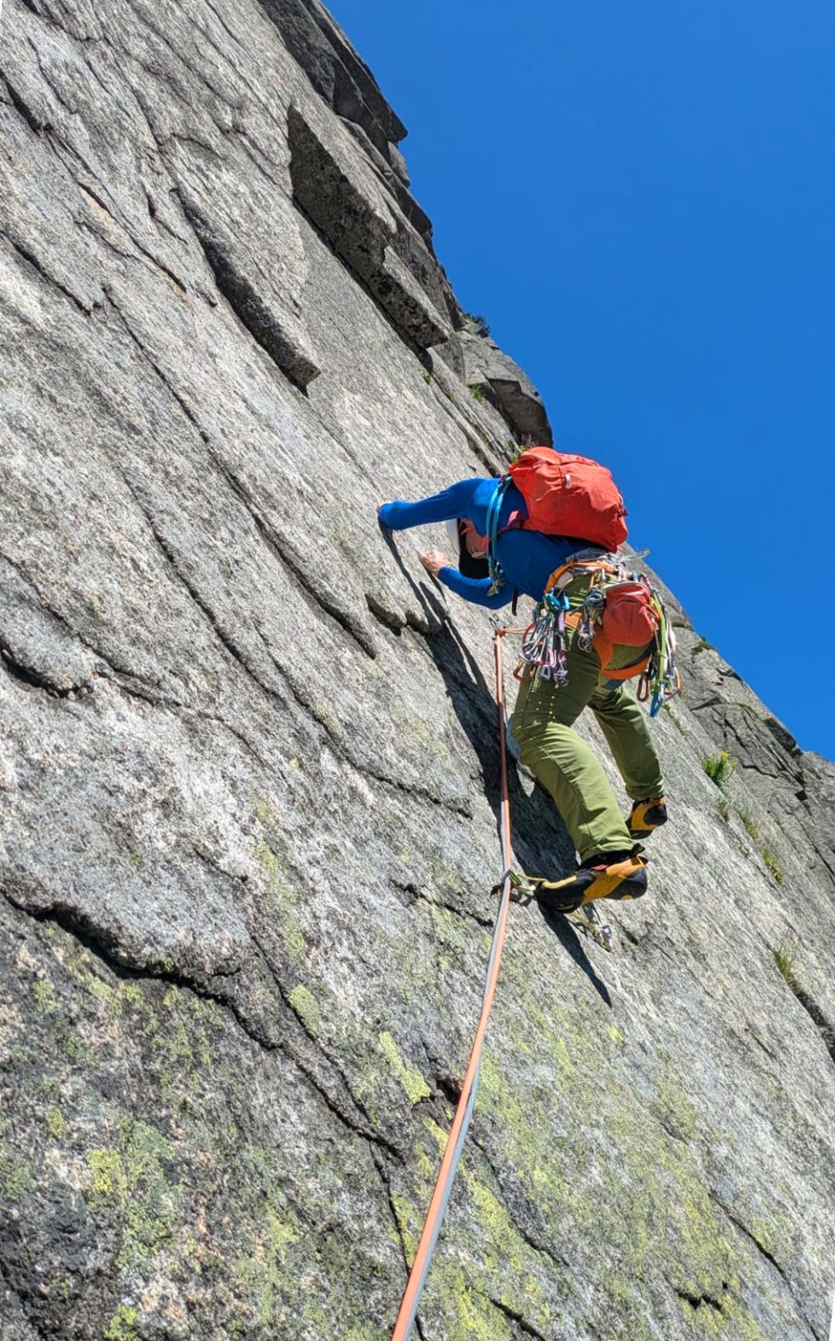 Sehr gut. Sonne kommt ganz gut in die Wand (Hochsommer) und freut auch nach dem kalten Couloir. Erste 5-6 m waren schlammig (Schnee gerade abgeschmolzen)