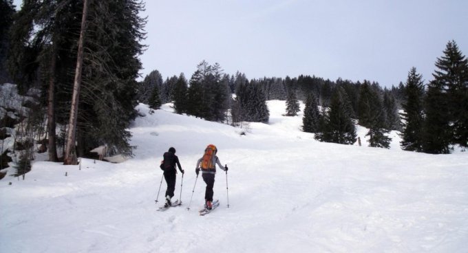 Ab Vermol durchgehende harte Schneedecke bis zum Hüenerchopf bzw. Madchopf. Bei der Abfahrt tragende Schneedecke bis zirka 1500 müM. Dann leicht aufgefirnt. War zum Fahren sehr angenehm. Ab ungefähr 1400 müM in den Südhängen oberhalb Weisstannen kein Schnee mehr.