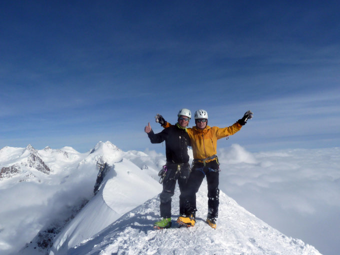 Wir sind die Wand direkt von der ersten Bahn zum "Trockenen Steg" mit Ski angegangen. Einstieg 11 Uhr, Ausstieg am Gipfel gegen 17 Uhr. Danach übers Schwarztor noch bis zur Monte-Rosa-Hütte.