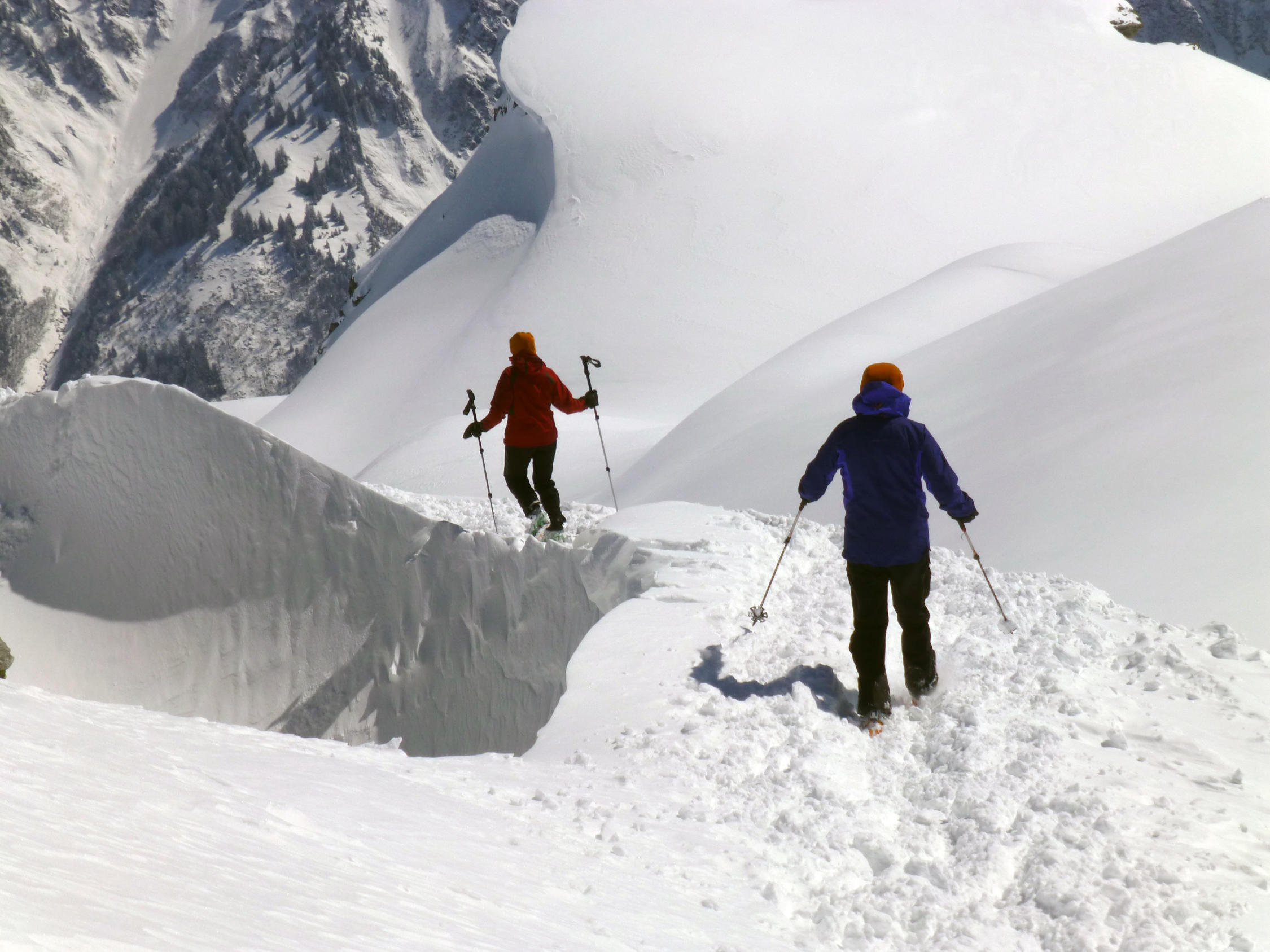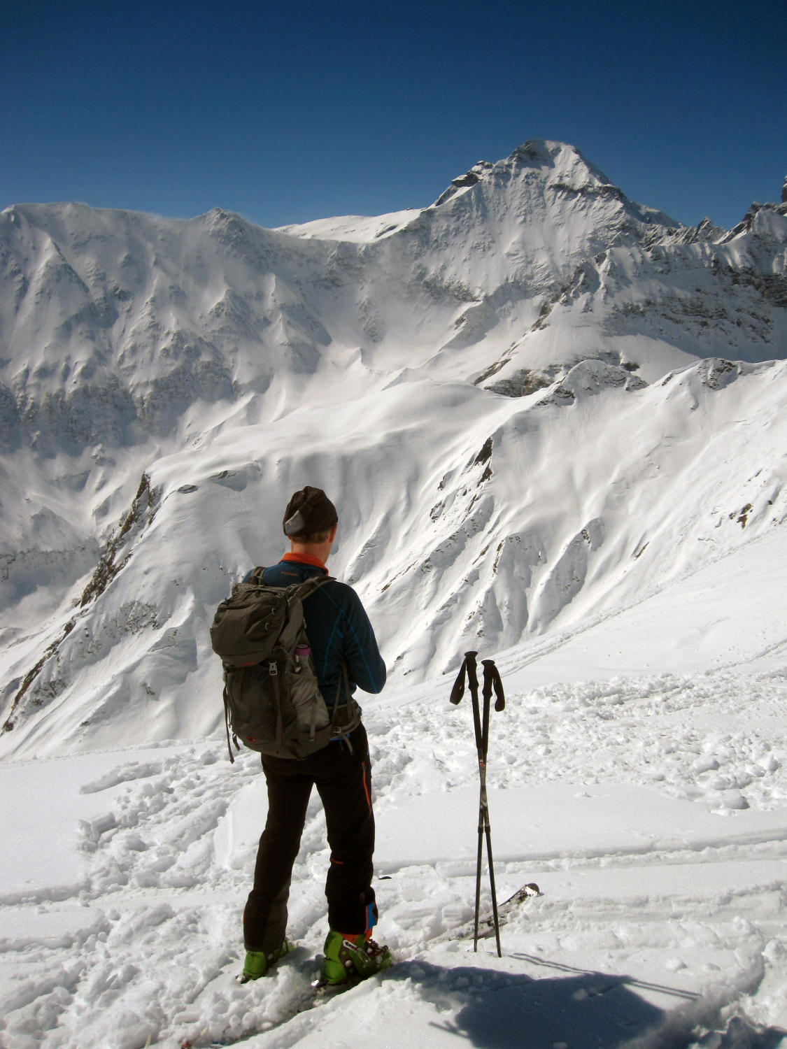 Viel Wind und Triebschnee Richtung Hausstock. Auf ca 2000m dann ein Schneebrett! Deshalb haben wir die Tour abgebrochen und sind zum Chli Chärpf aufgestiegen. Vom Chärpf Aufstieg sahen wir, dass zwei zusätzliche Schneebretter an der selben Stelle niedergegangen sind.