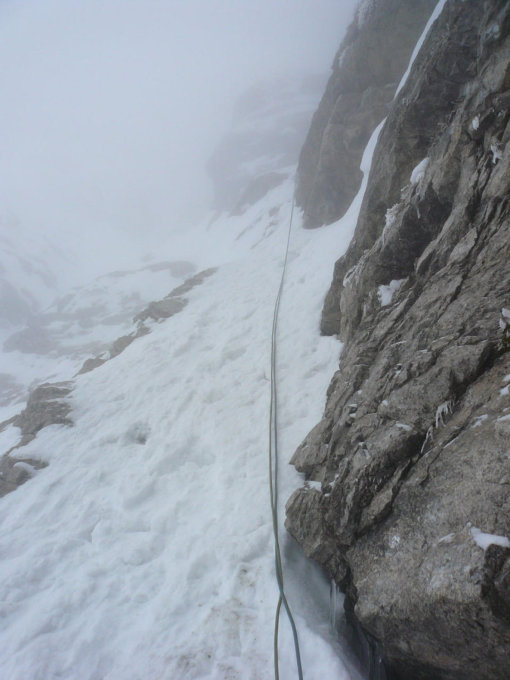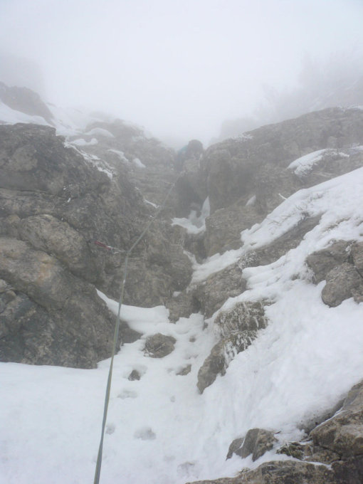 Endlich konnte ich diese geile Route bei besten Verhältnissen im wechselnden Vorstieg machen. Wir haben vom letzten Stand aus abgeseilt, der Hatsch zum Gipfel und Abstieg über Oberen Gaisalpsee war uns ohne Fernsicht dann zu blöd.