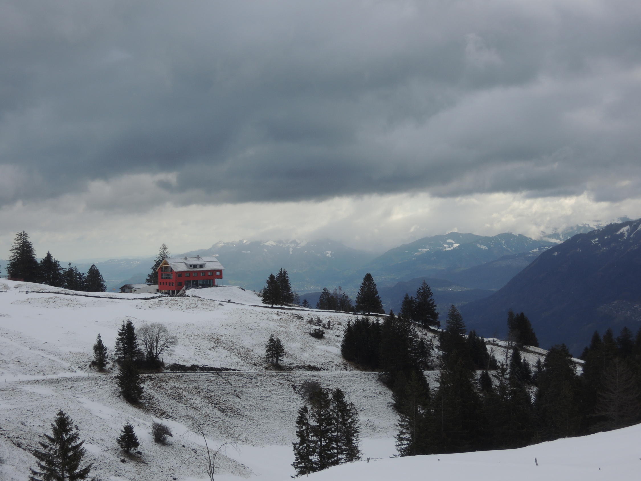 Wetter schlechter als gemeldet. Am Anfang noch gute Sicht. Erste kürzere apere Stellen auf der Strasse nach Untersäss. Ab dort meistens White-out. Ab und zu mal riss es auf. Keine Spur war mehr vorhanden wegen dem Neu- und Triebschnee.