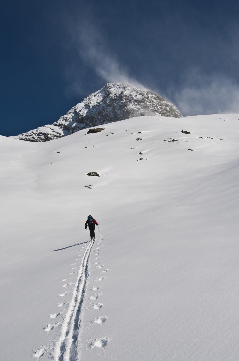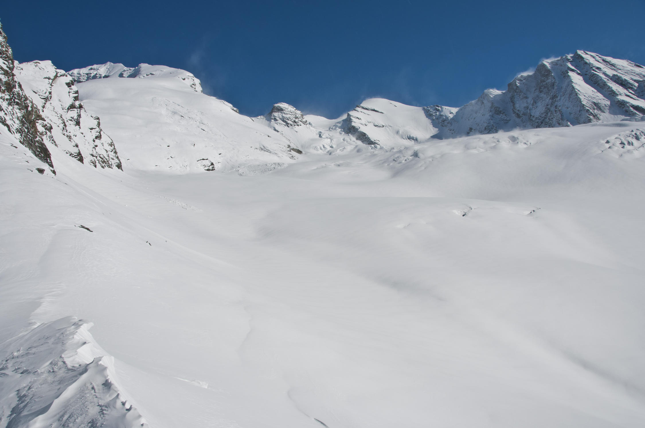 Am Nachmittag sind wir bei zunehmend sonnigem Wetter noch etwas Richtung Anenlücke hochgestiegen. Bei der Abfahrt bester Pulverschnee.