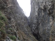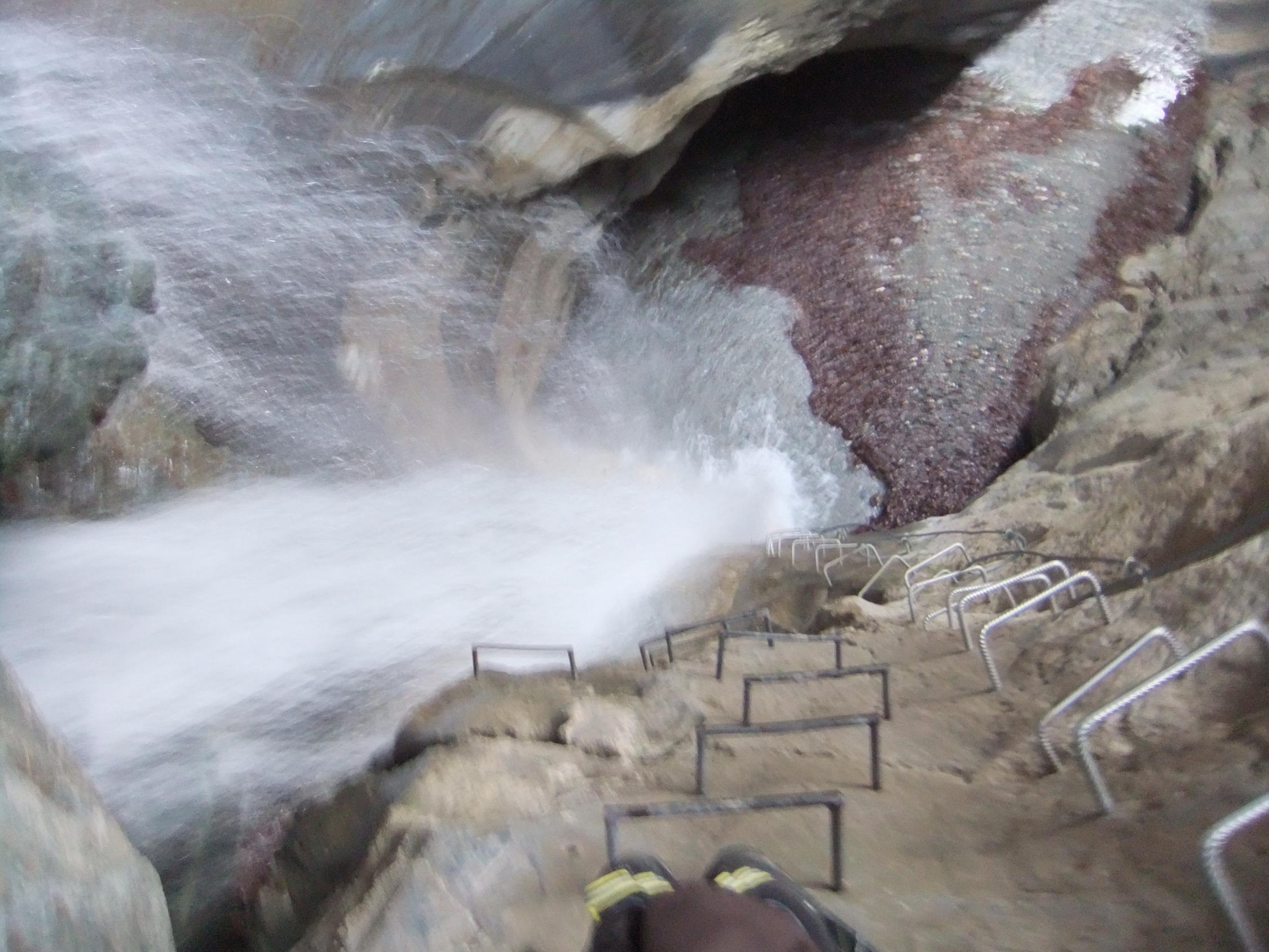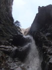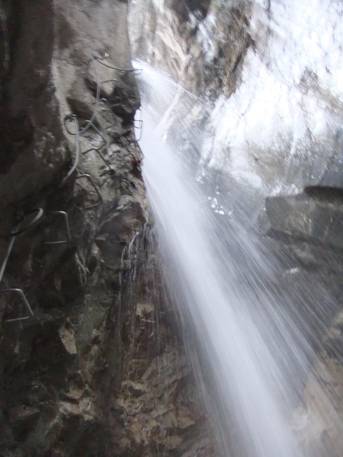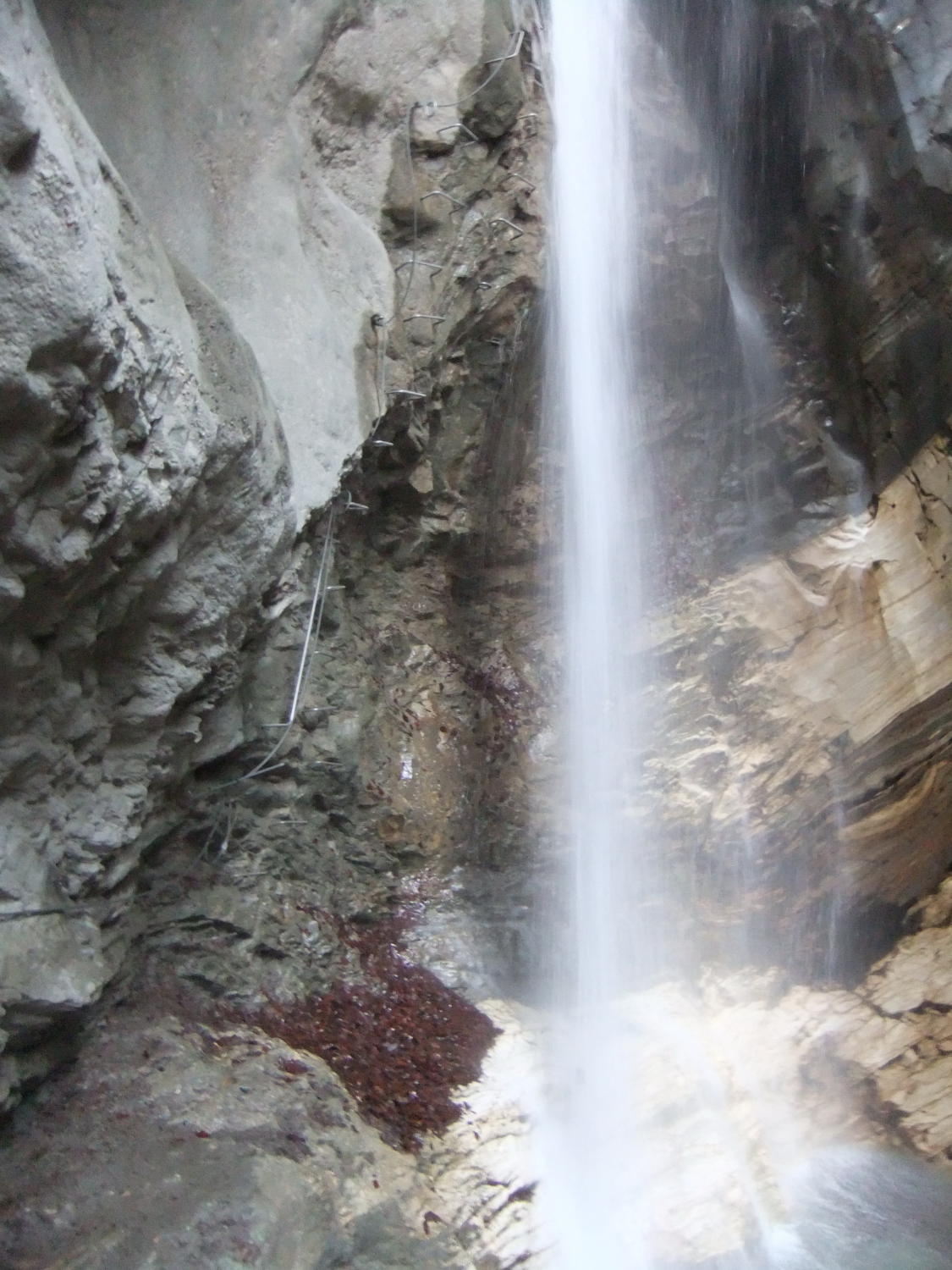 Je nach Wasserstand kann es den Kletterer am 2. und 3. Wasserfall schon mal erheblich "durchduschen". Was in heißen Tagen dort willkommen sein dürfte. Sollte jedoch anfängliche Bachüberquerung nicht möglich sein, dürften die oberen Passagen wegen Hochwasser ebenfalls problematisch sein, durchsteigen zu wollen. Dann sollte man auf Umkehren gefaßt sein. Oder man hat einen Tauchanzug dabei.