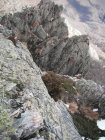 Im Abstieg kam mir ein Ferratisten- u. MTB-Pärchen aus Tuttlingen entgegen, die ebenfalls bis zur Graswiese herfuhren. Den Parkplatz hat man auf den Ostgrat-Passagen wiederholt im Blick.