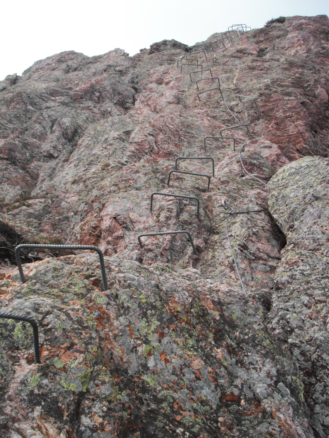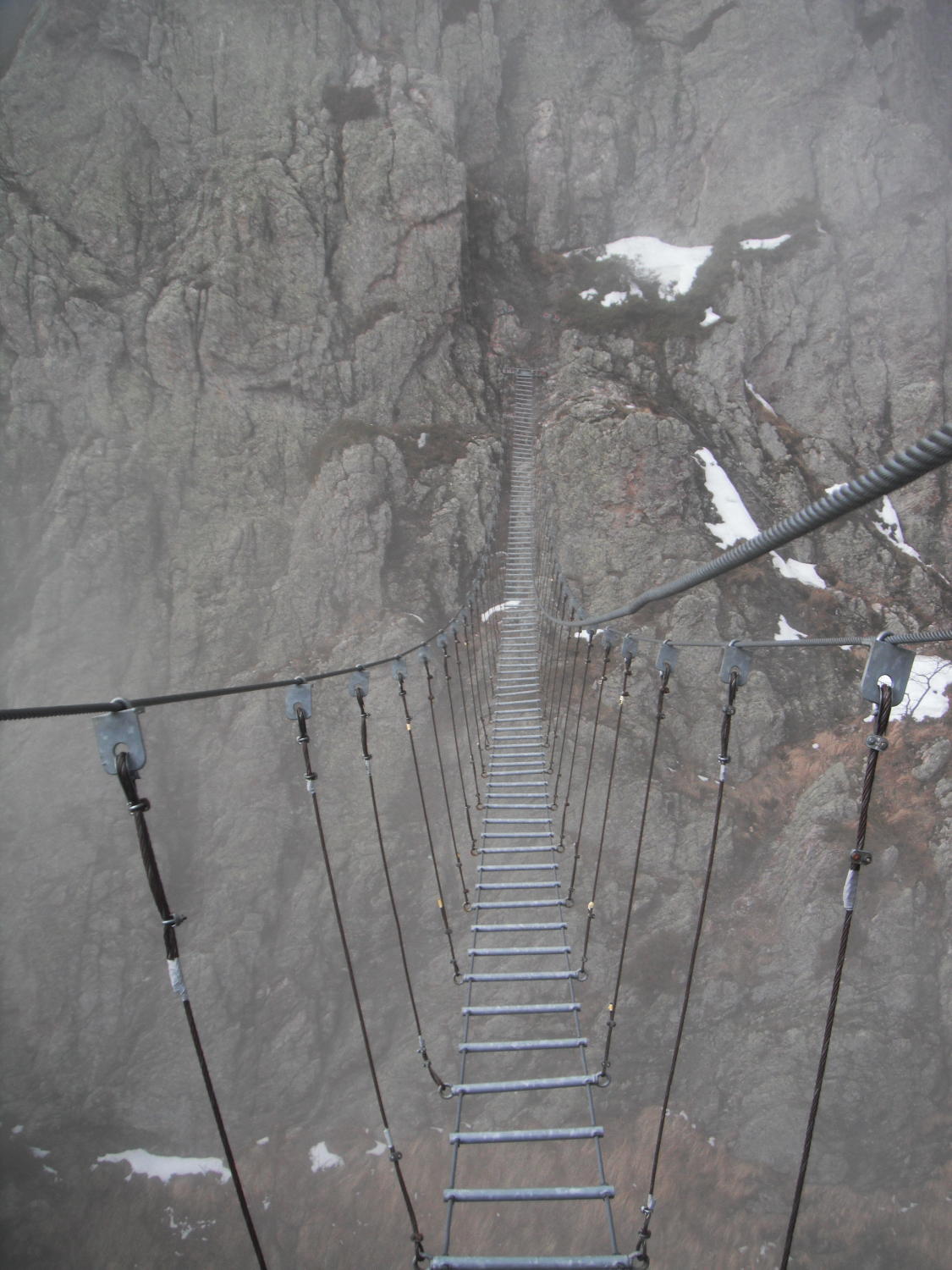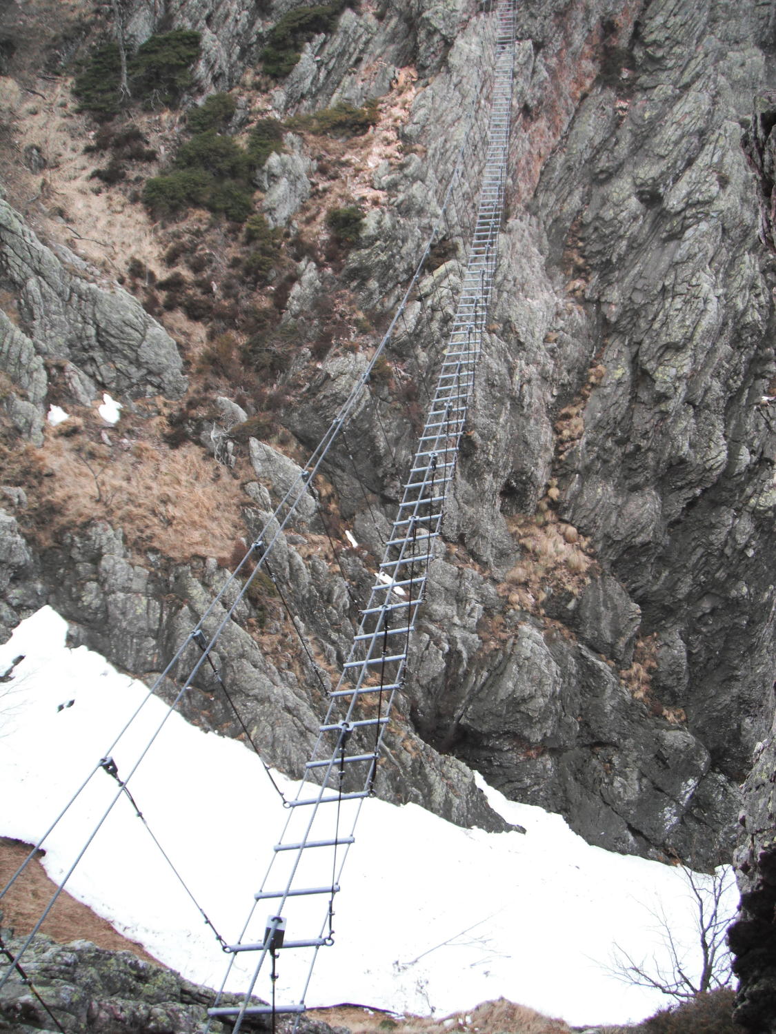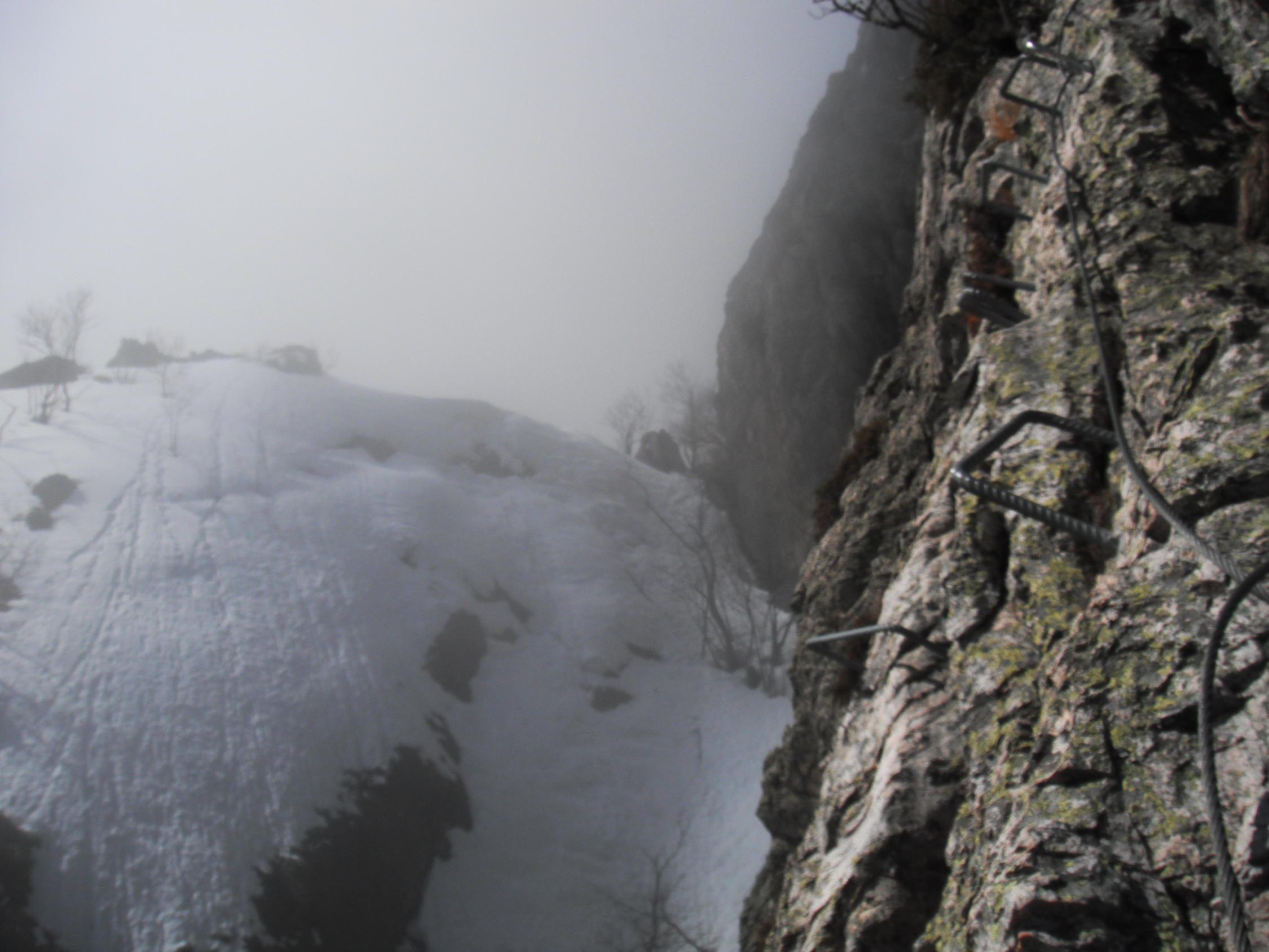 Aufregender Klettersteig mit luftigen Grat-Passagen. In den Notausstiegen lag noch viel Restschnee. Im oberen die Seilsicherung noch unterm Schnee. So auch der Abstiegsweg ab dem oberen Sattel. Darum wurde der Klettersteig wieder zurück gegangen, was ohne Probleme möglich ist.