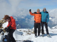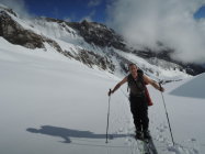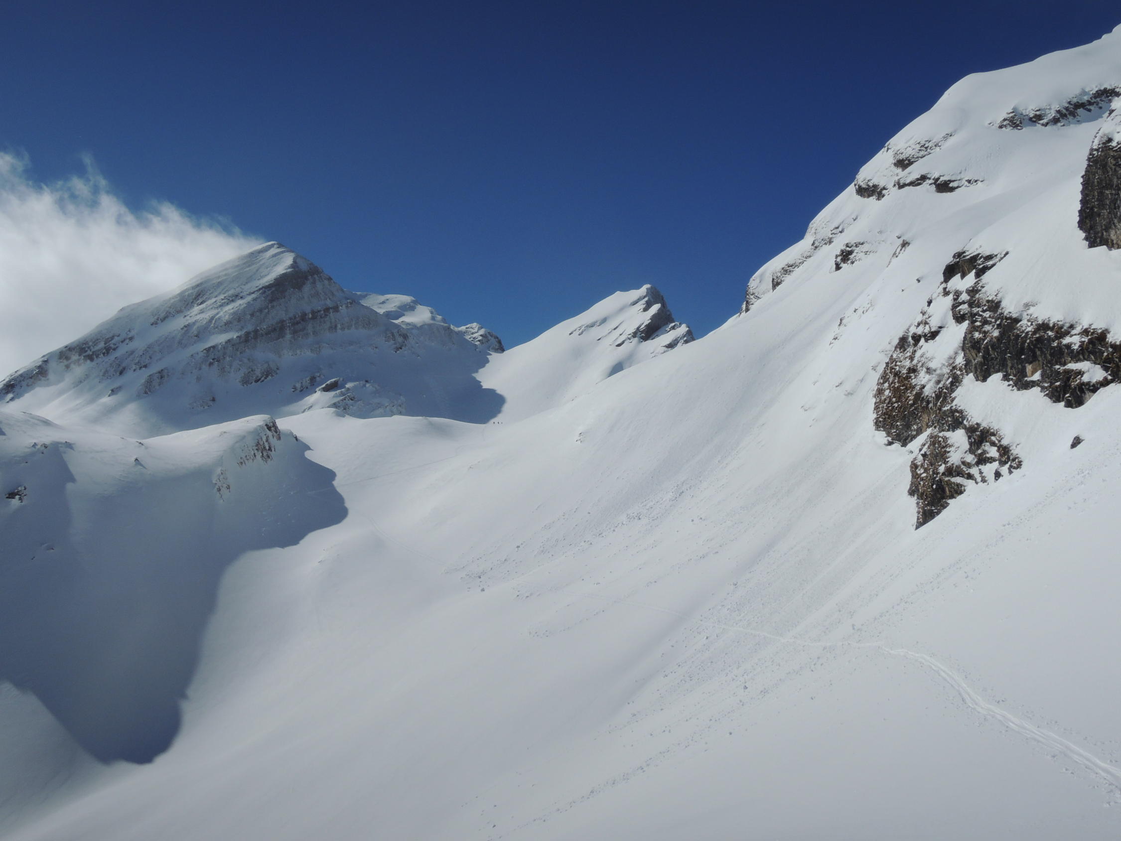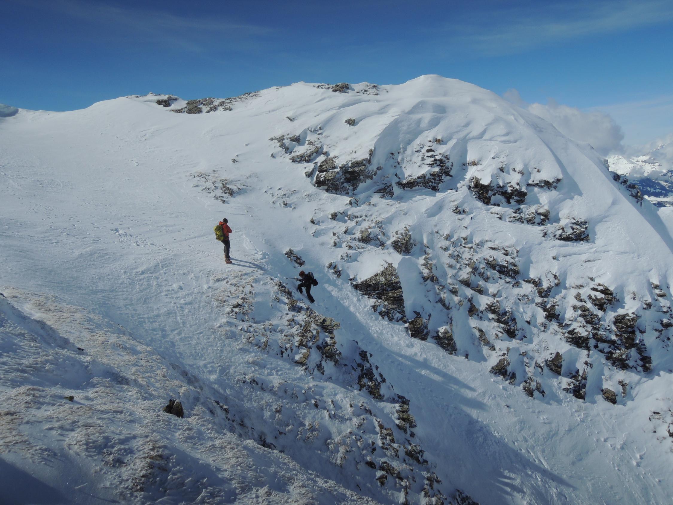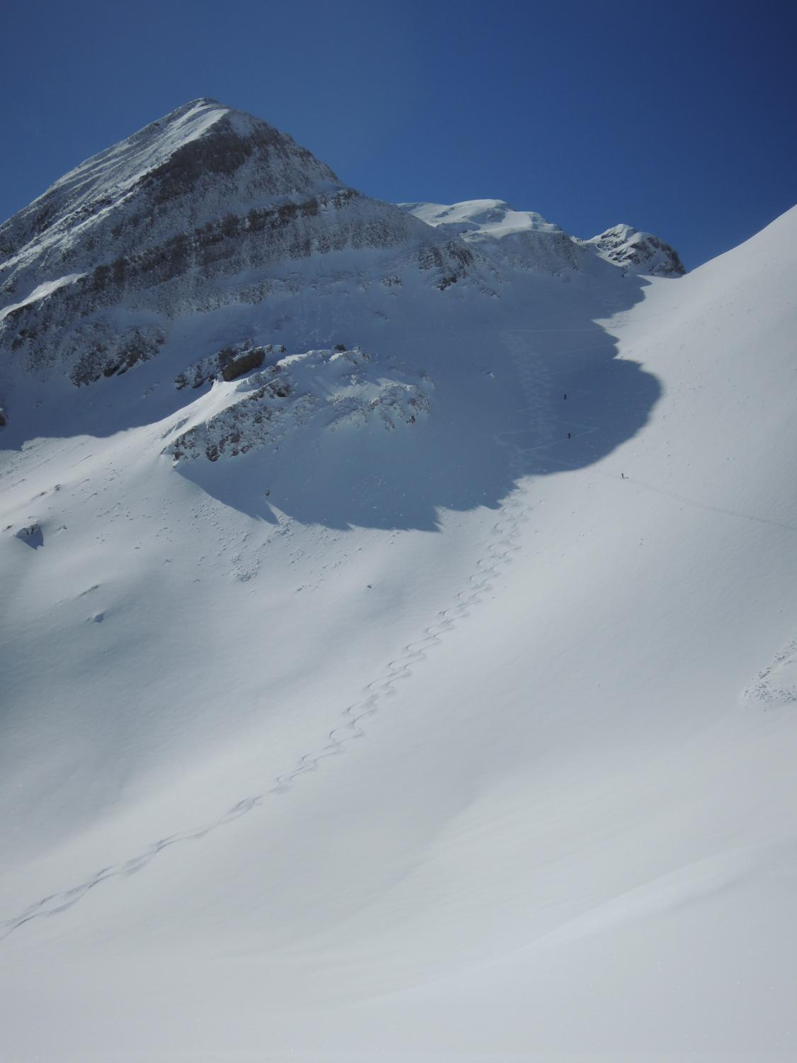Nach dem Lichten der Wolken wurde es elendig heiss. Ansonsten ist der Aufstieg momentan problemlos (Harscheisen braucht es nicht). Der steile Durchstieg ist gut machbar.