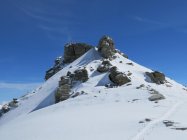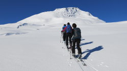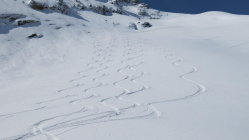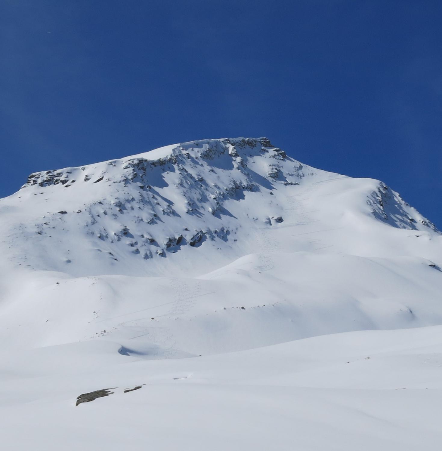 Beim Start stellenweise etwas weich, ab 1900 m fester Schnee. Ab 2300 m gut gesetzter Pulverschnee bis zum Gipfel.