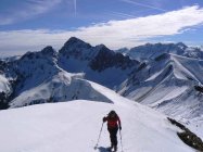 Die Nacht war leider nur in der ersten Hälfte klar. In der ersten Stunde es Aufstiegs noch bewölkt. Dann super Wetter. Schnee im Aufstieg noch tragend. Abfahrt um 11Uhr auf den ersten 300 hm noch schön tragend. Dann mehr und mehr Sumpf.