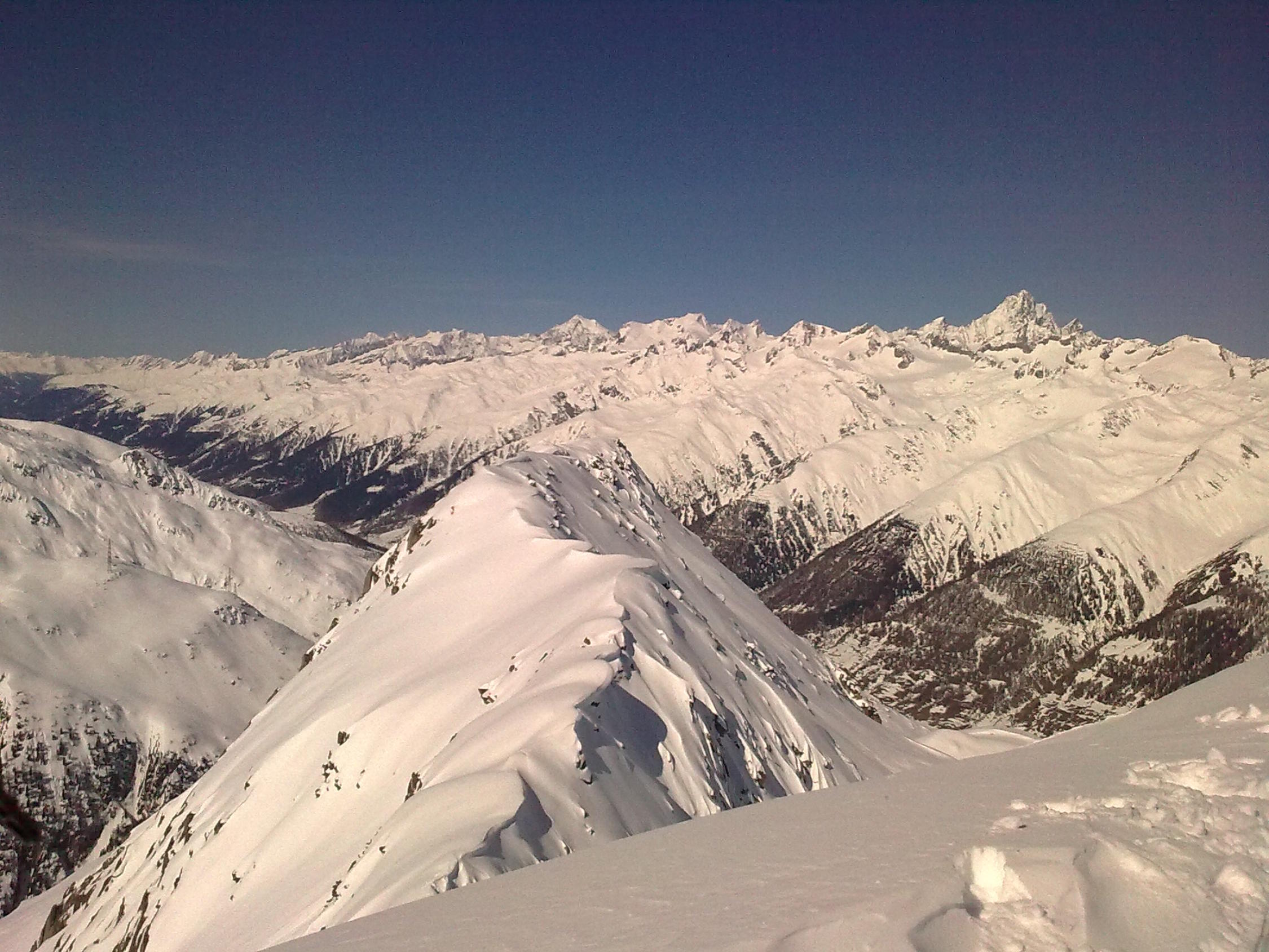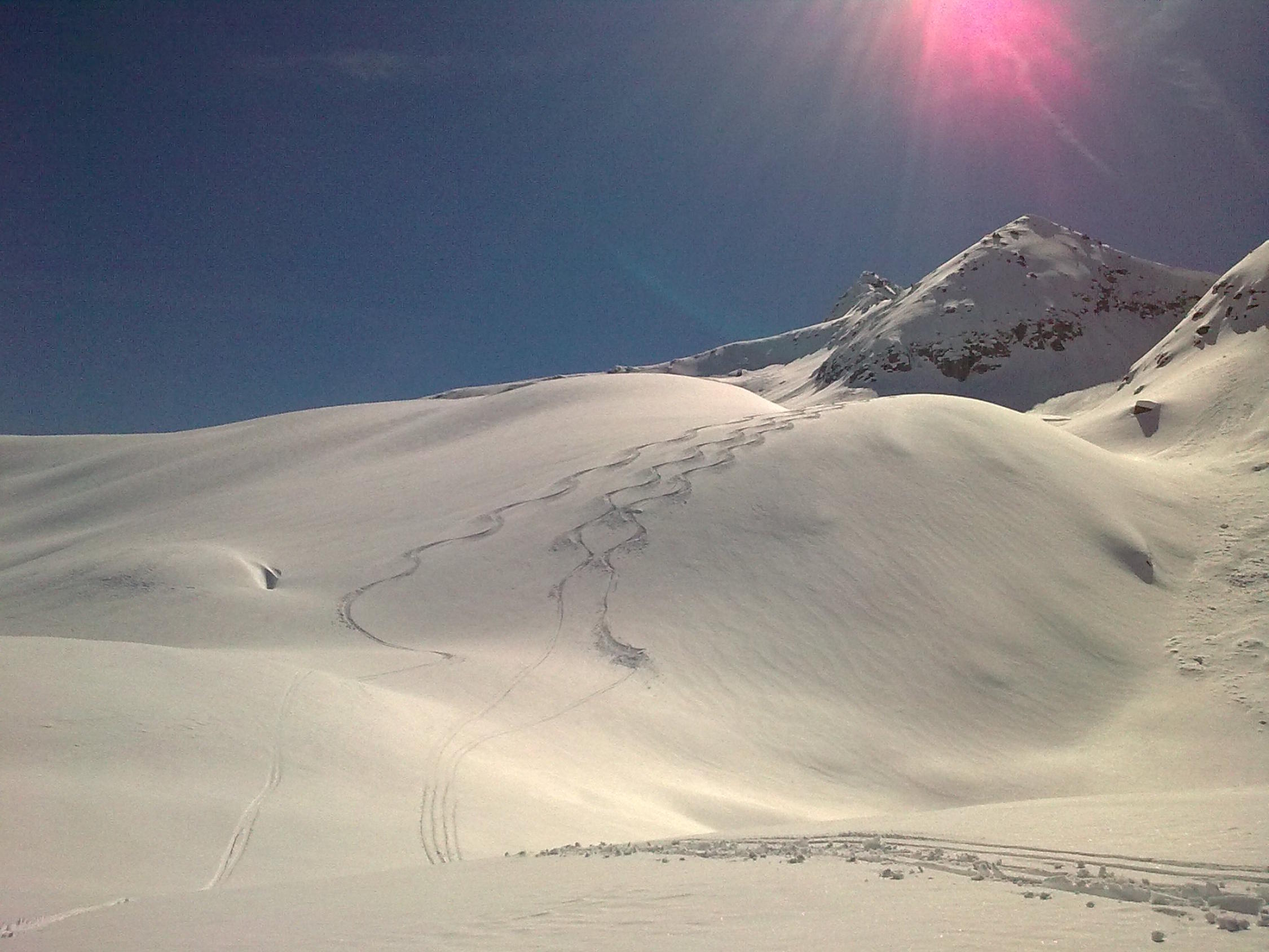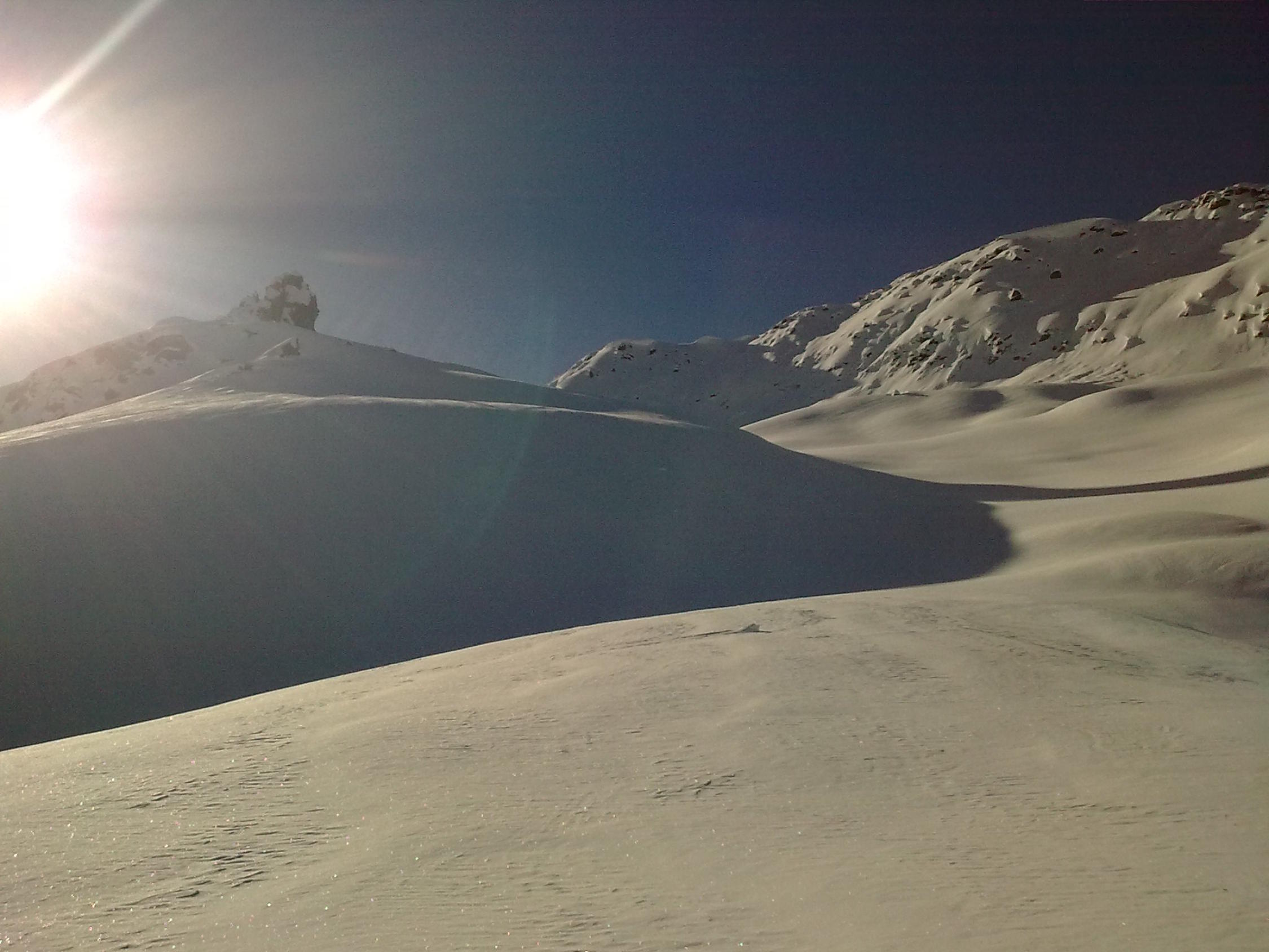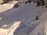 Mit Triebschnee und Nassschnee gefüllte Hänge